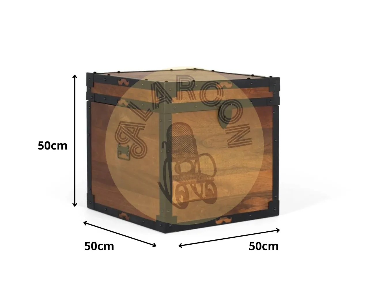 Con unas medidas de 50 cm de alto, 50 cm de largo y 50 cm de ancho, este baúl se convierte en una pieza versátil, ideal para complementar la decoración y añadir un toque de personalidad única a tu hogar.