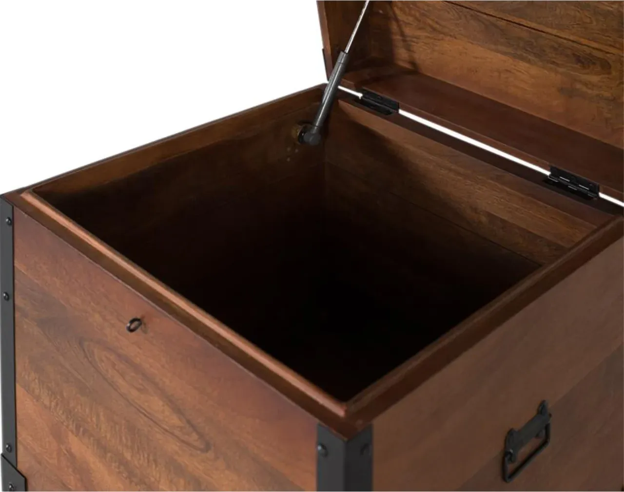El cierre central de hierro decorativo refuerza la estética de cofre tradicional y aporta un detalle distintivo que realza su diseño. Su estructura sólida garantiza durabilidad y un uso confiable a lo largo del tiempo.