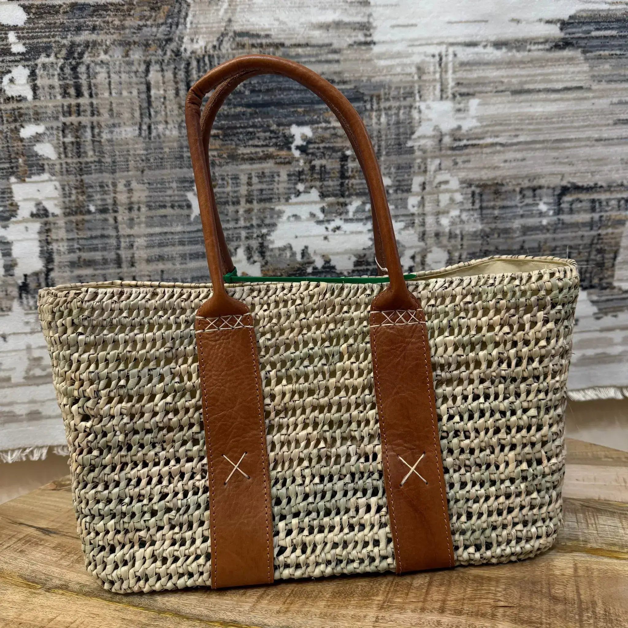 Las asas largas de cuero aportan firmeza y comodidad al cargar, con un acabado visual que resalta el contraste entre materiales. Las costuras reforzadas y los detalles hechos a mano subrayan su carácter duradero, auténtico y estéticamente atractivo.