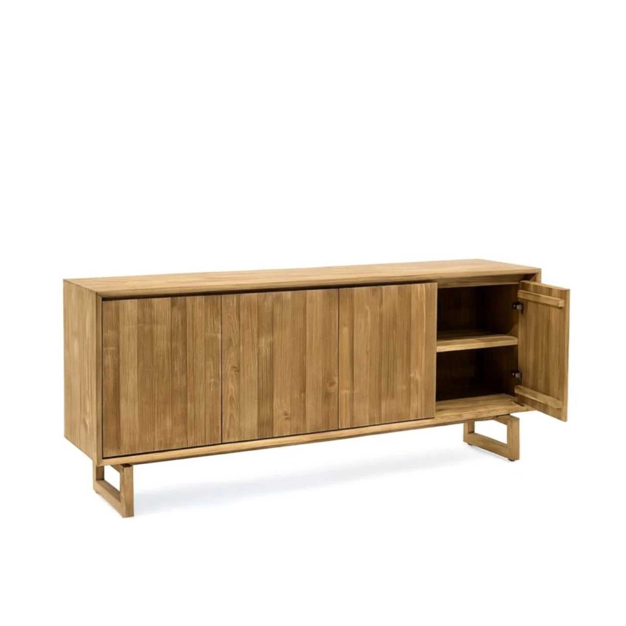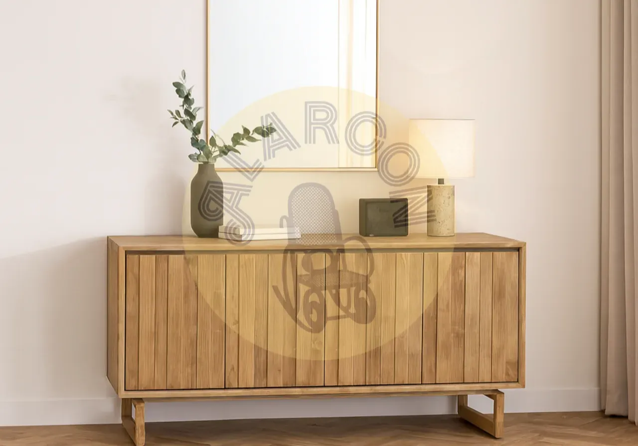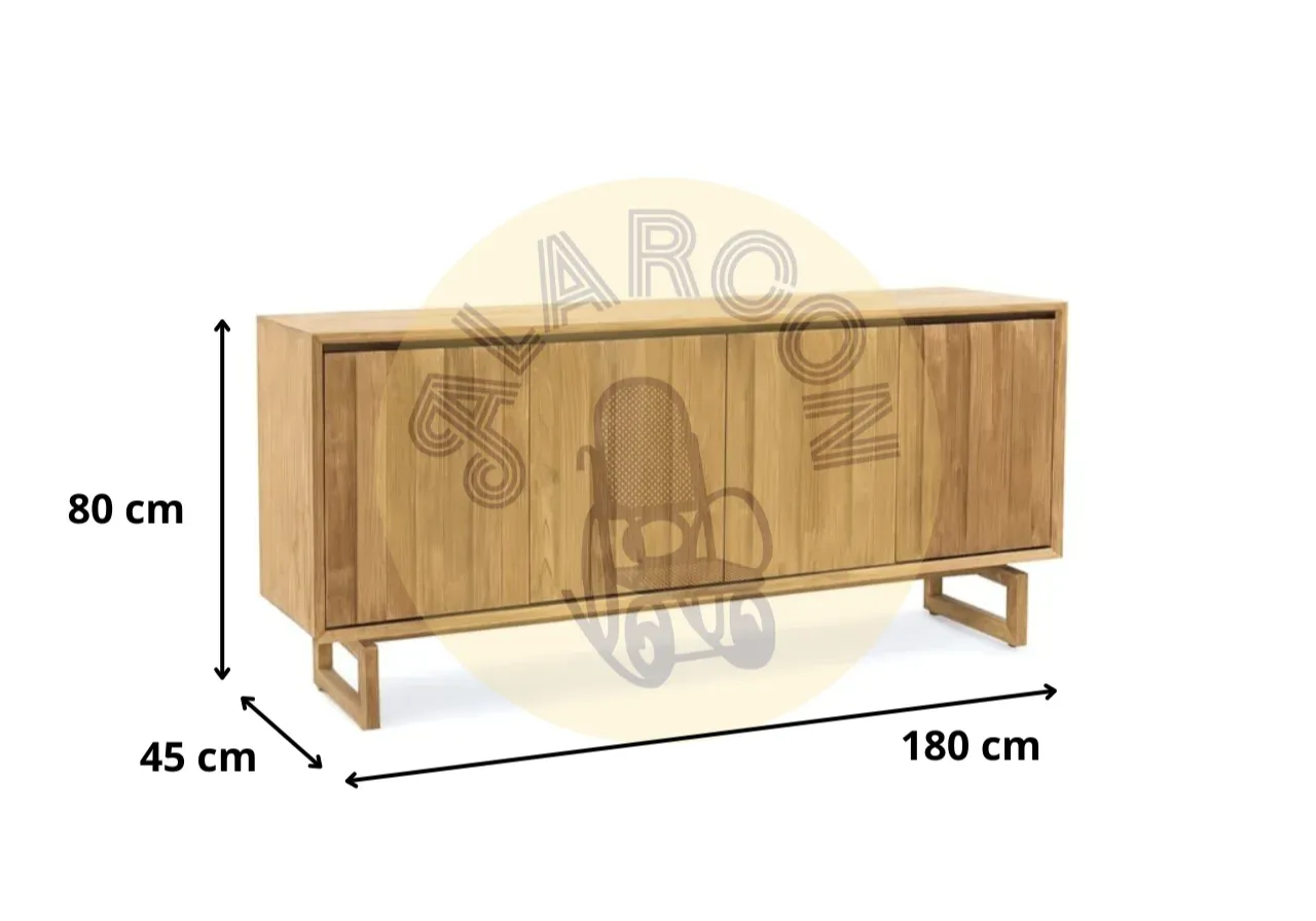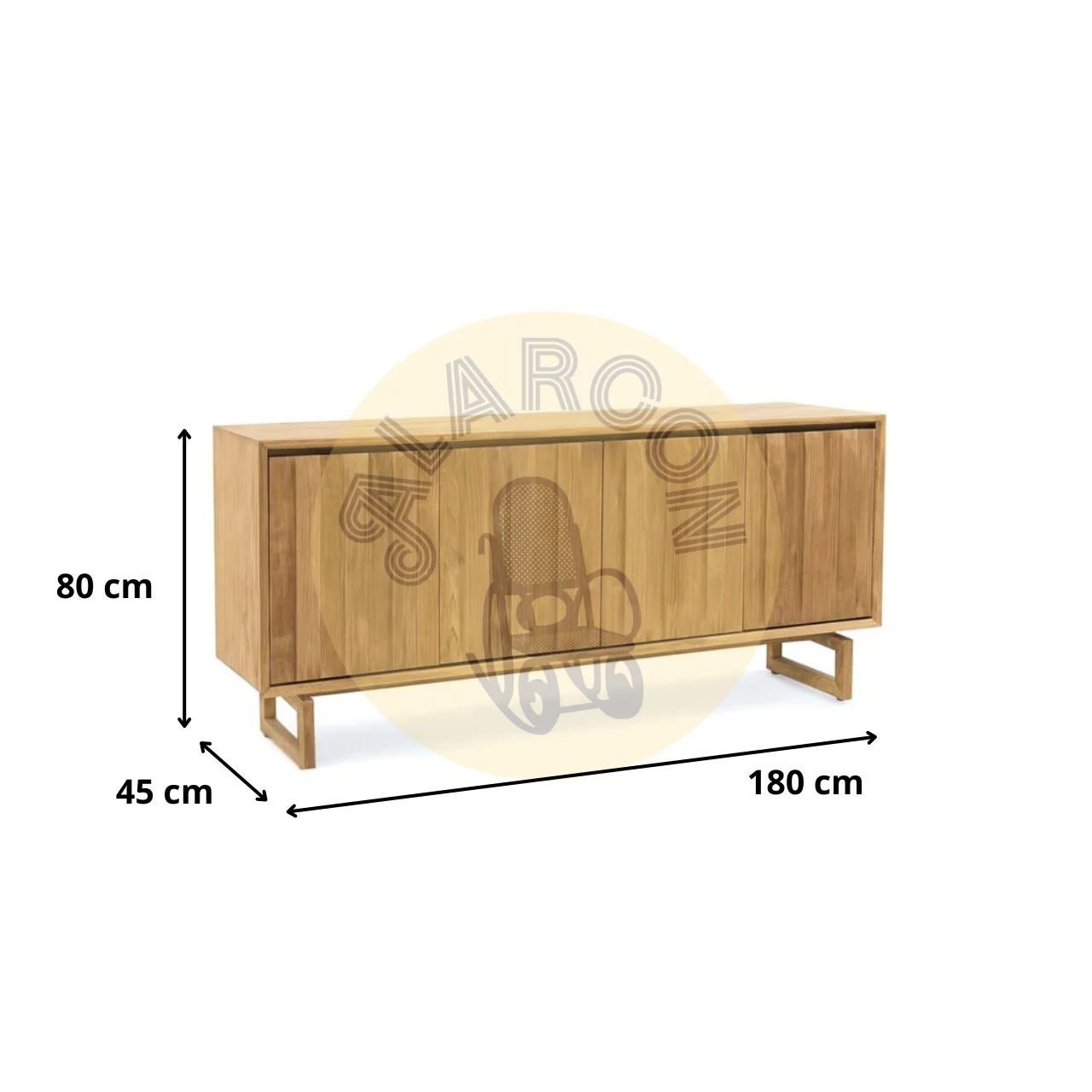 Fabricado en madera de teca maciza, este bufet combina la resistencia natural del material con un diseño moderno y minimalista. Su acabado artesanal aporta una textura cálida que realza cualquier ambiente, convirtiéndose en una pieza funcional y decorativa a la vez.