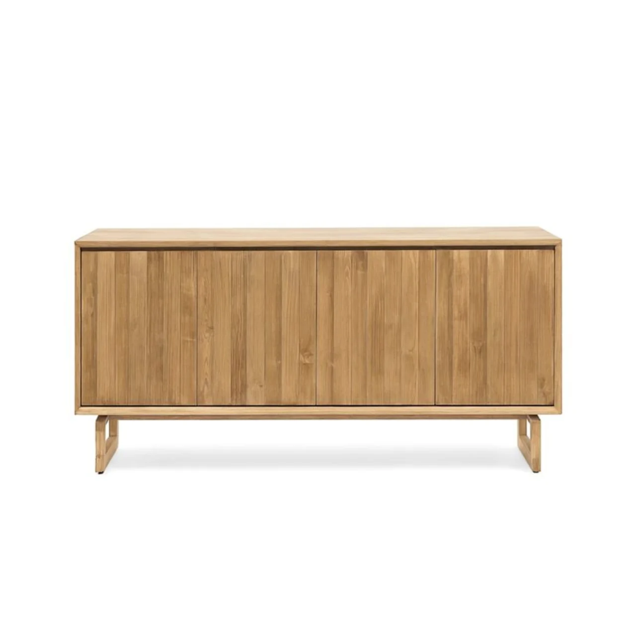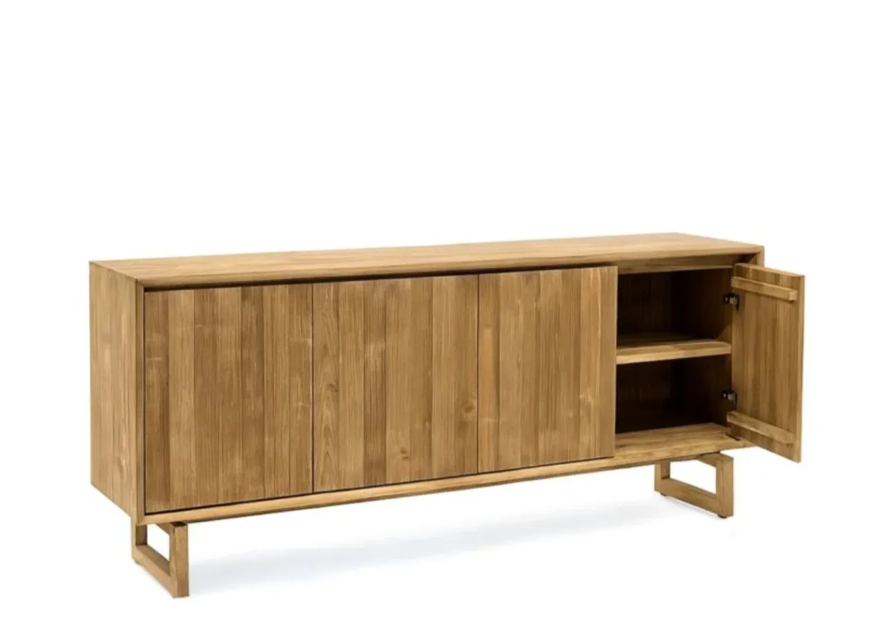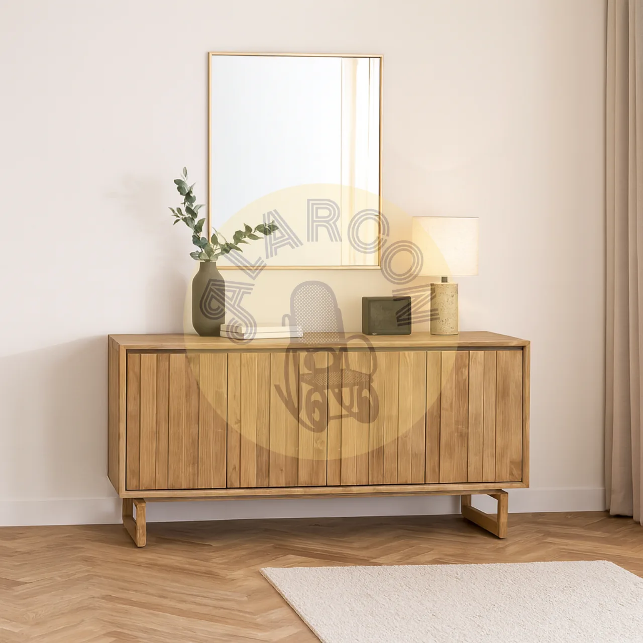 Fabricado en madera de teca maciza, este bufet combina la resistencia natural del material con un diseño moderno y minimalista. Su acabado artesanal aporta una textura cálida que realza cualquier ambiente, convirtiéndose en una pieza funcional y decorativa a la vez.