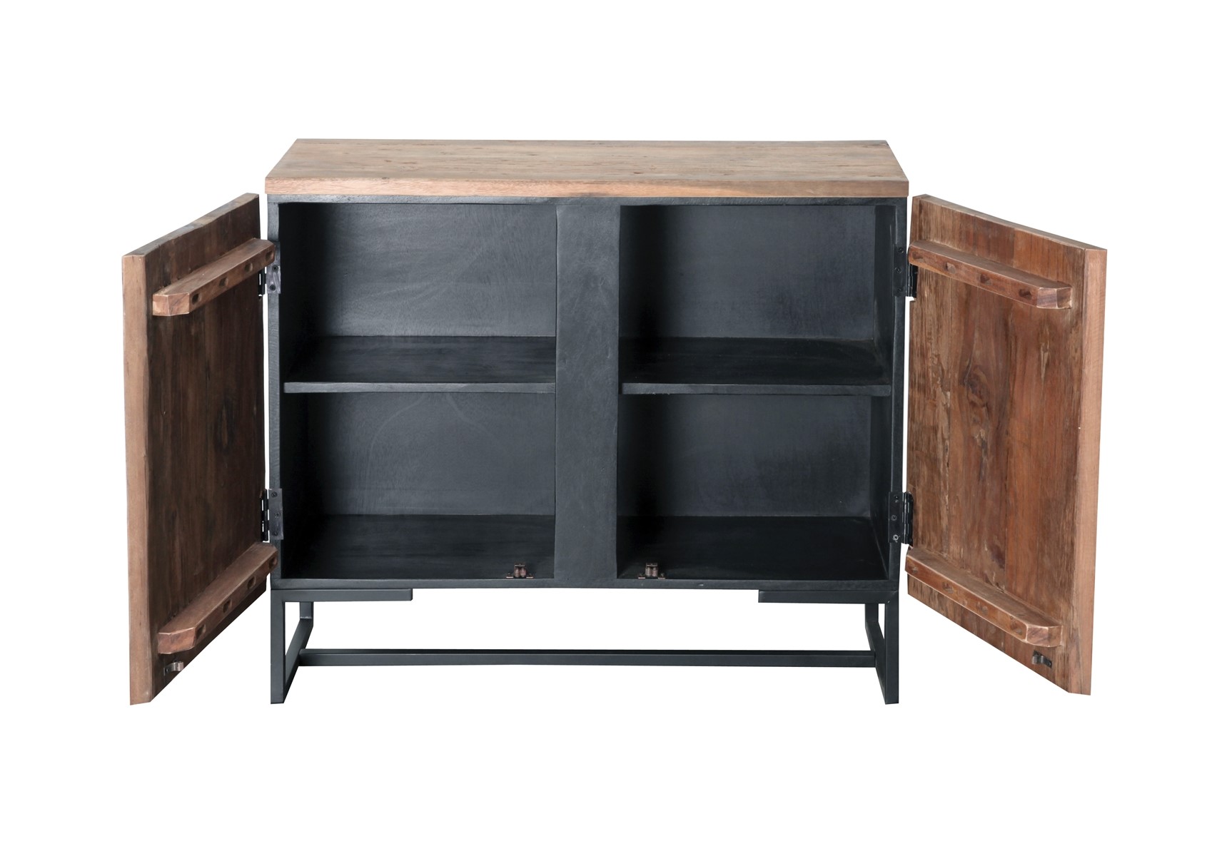 El buffet Lacerta combina madera reciclada de acacia y metal, creando una pieza única que aporta un toque contemporáneo a cualquier espacio. Su diseño en tonos naturales y negros resalta la belleza de los materiales, adaptándose a diversos estilos de decoración.