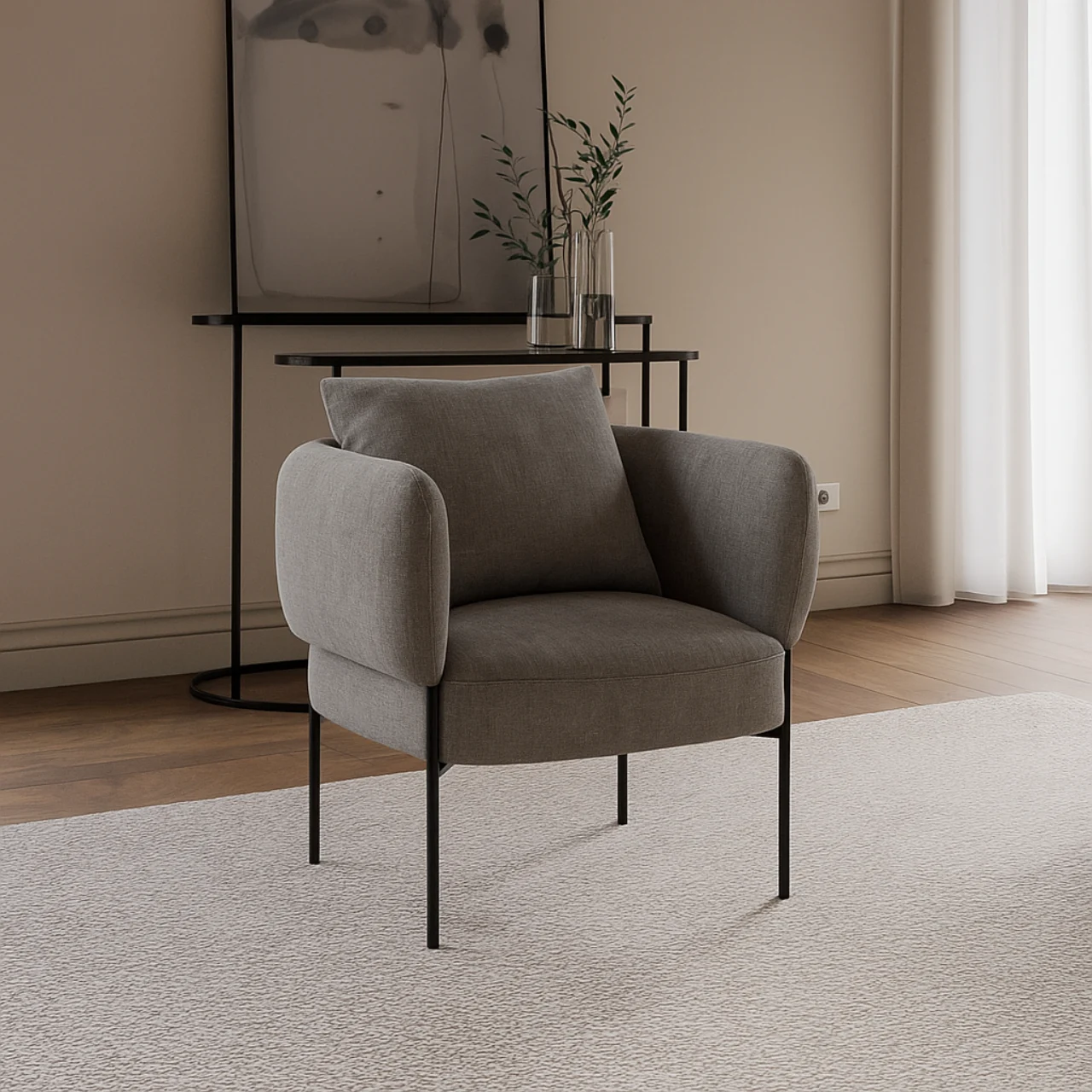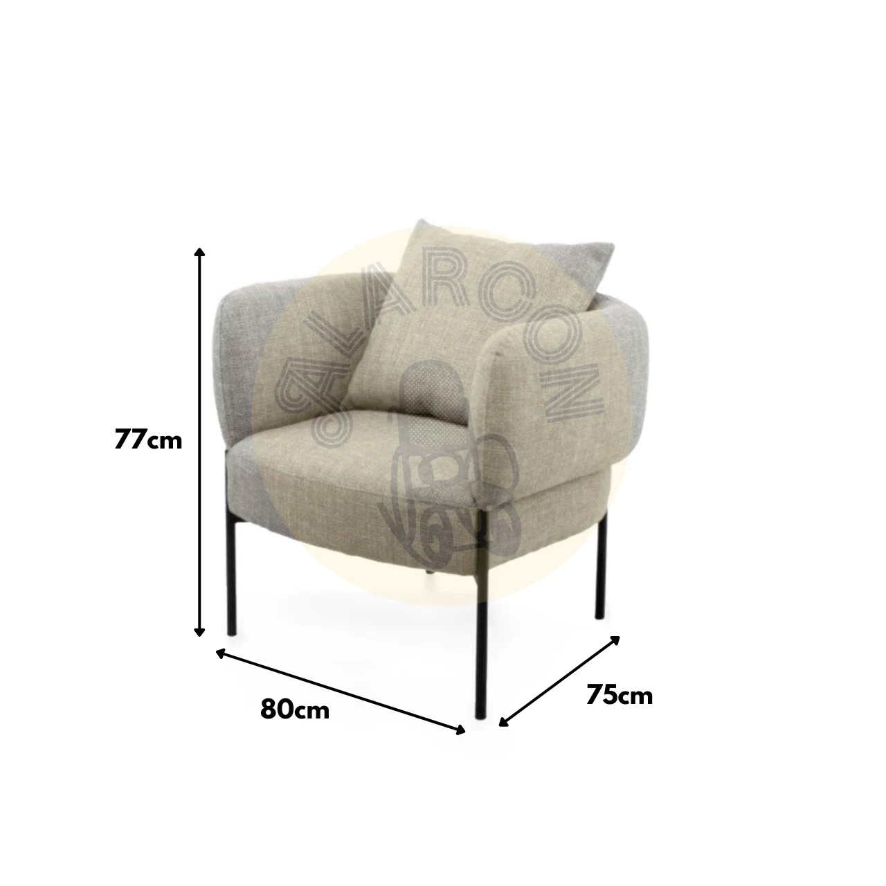 Las patas de metal negro aportan estabilidad, resistencia y un contraste elegante con el tapizado beige. Con capacidad para soportar hasta 120 kg, la butaca AGADIR combina estética, durabilidad y funcionalidad en una sola pieza.