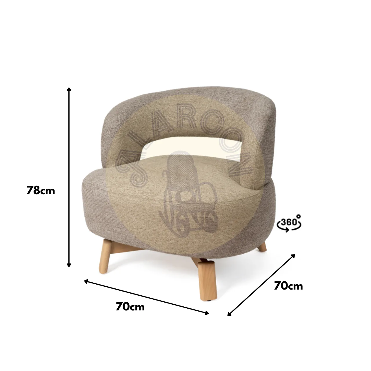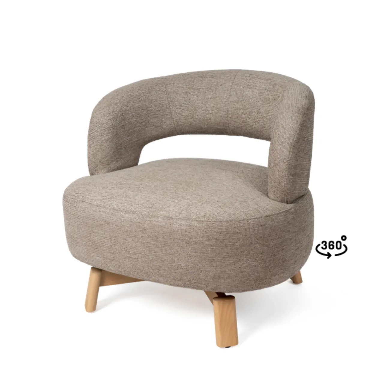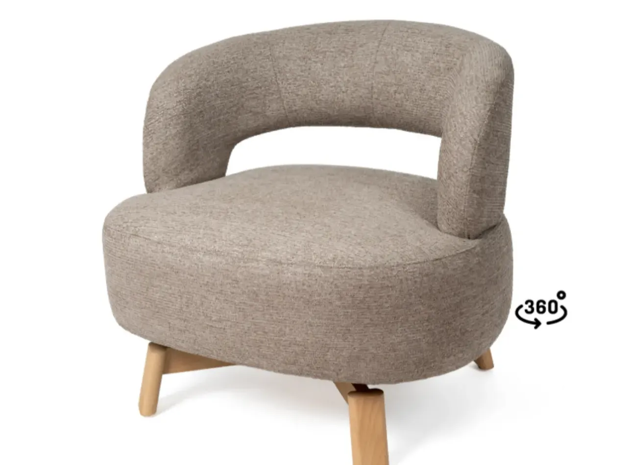 Con patitas de madera de haya, la butaca eleva la estructura, añadiendo estabilidad y un toque natural que complementa su diseño elegante. Además, su mecanismo giratorio de 360° aporta comodidad y versatilidad, permitiendo adaptarse a diferentes usos con facilidad.
