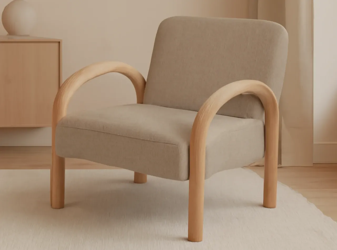 Diseño envolvente y moderno que aporta elegancia y calidez a cualquier espacio, ideal para complementar decoración nórdica o japandi.