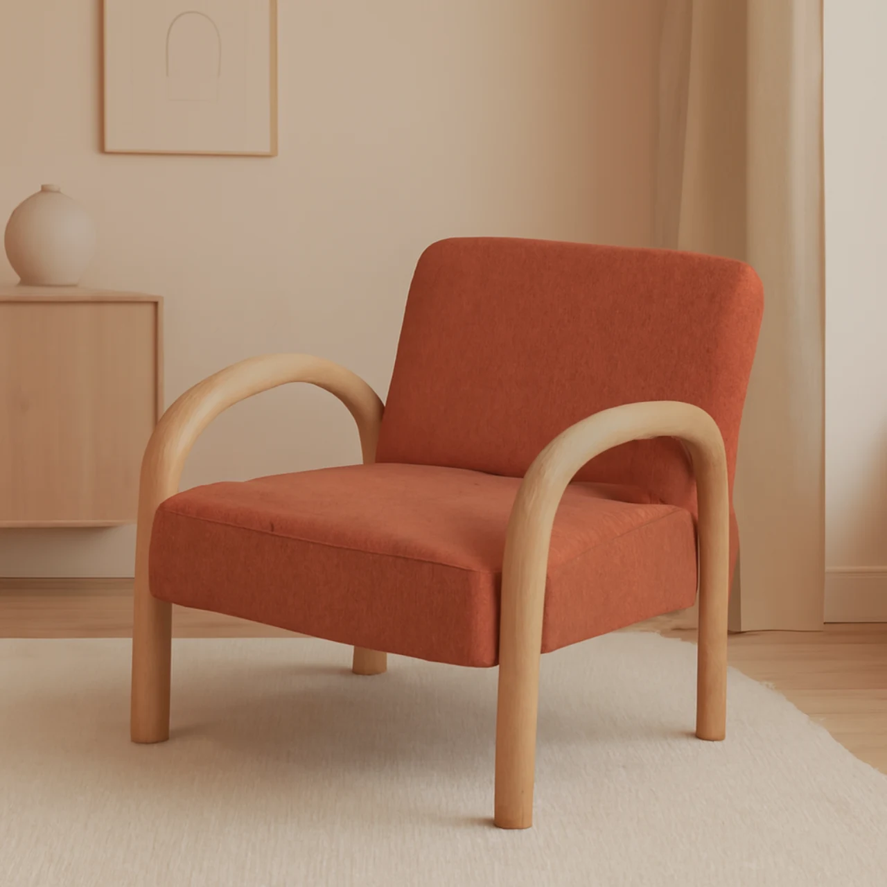 Diseño envolvente y moderno que aporta elegancia y calidez a cualquier espacio, ideal para complementar decoración nórdica o japandi.