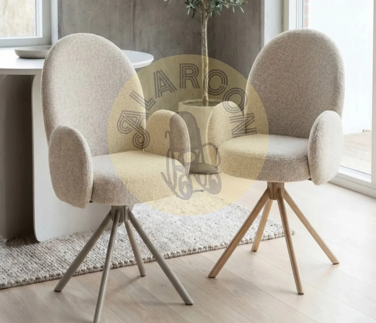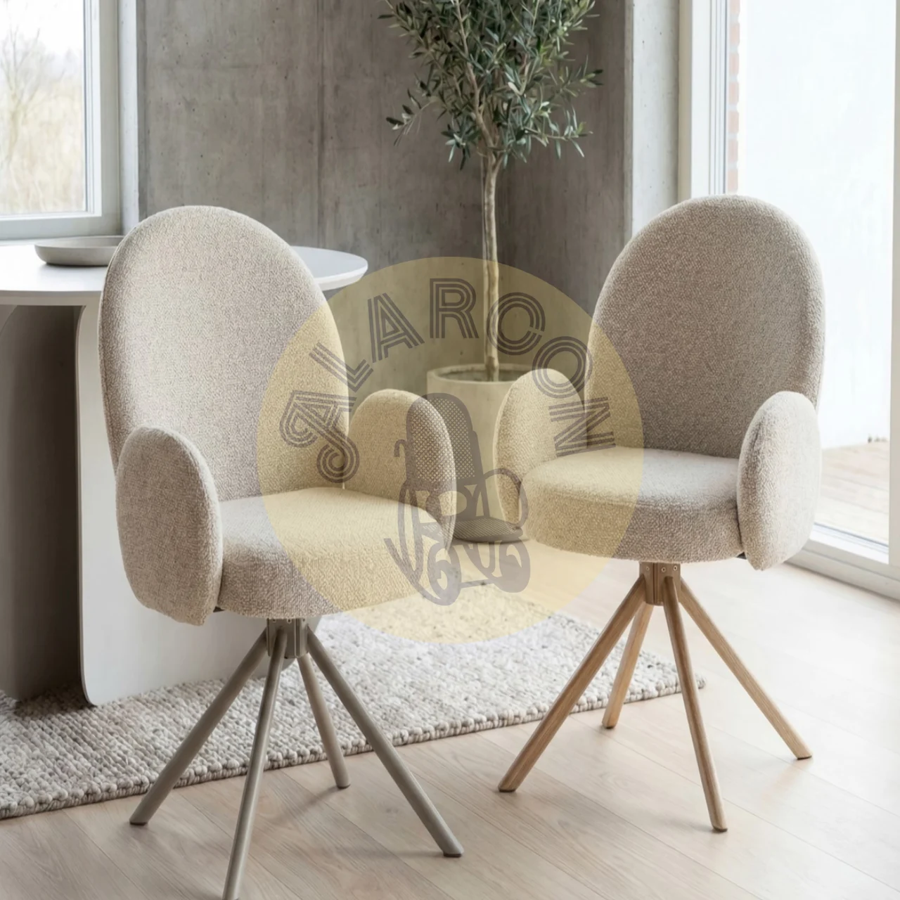 Diseñada para espacios actuales, la butaca giratoria Galayos T. Fancy combina una estética moderna, elegante y atemporal con un acabado beige/topo fácil de integrar en salones, despachos o zonas de lectura. Su diseño envolvente aporta comodidad visual y funcional sin recargar el ambiente.