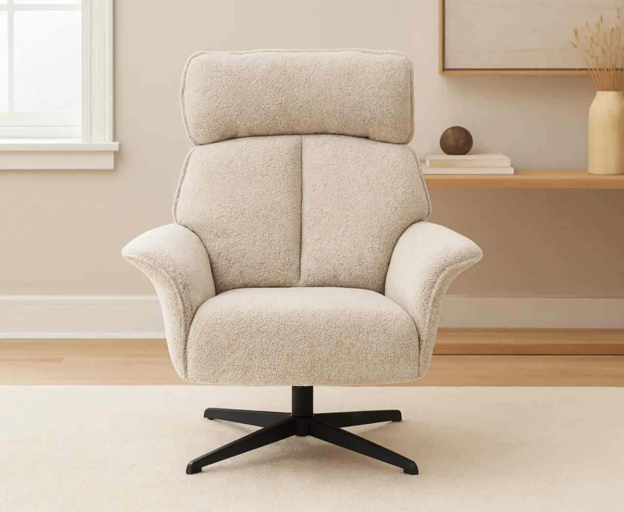 La butaca LYNN destaca por su diseño envolvente y sofisticado, con líneas suaves que combinan ergonomía y elegancia para ofrecer una experiencia de descanso superior. Su respaldo alto se adapta al cuerpo, mientras que los apoyabrazos curvados aportan comodidad y estilo en cualquier ambiente.