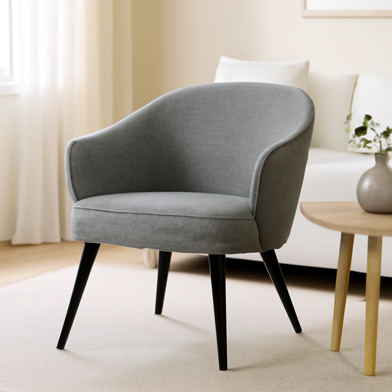 La butaca MACAO en gris claro se caracteriza por su diseño curvilíneo y envolvente, perfecto para añadir un toque moderno y acogedor a cualquier espacio. Su estética contemporánea se adapta fácilmente a salones, dormitorios o áreas de descanso, aportando una sensación de elegancia y confort.