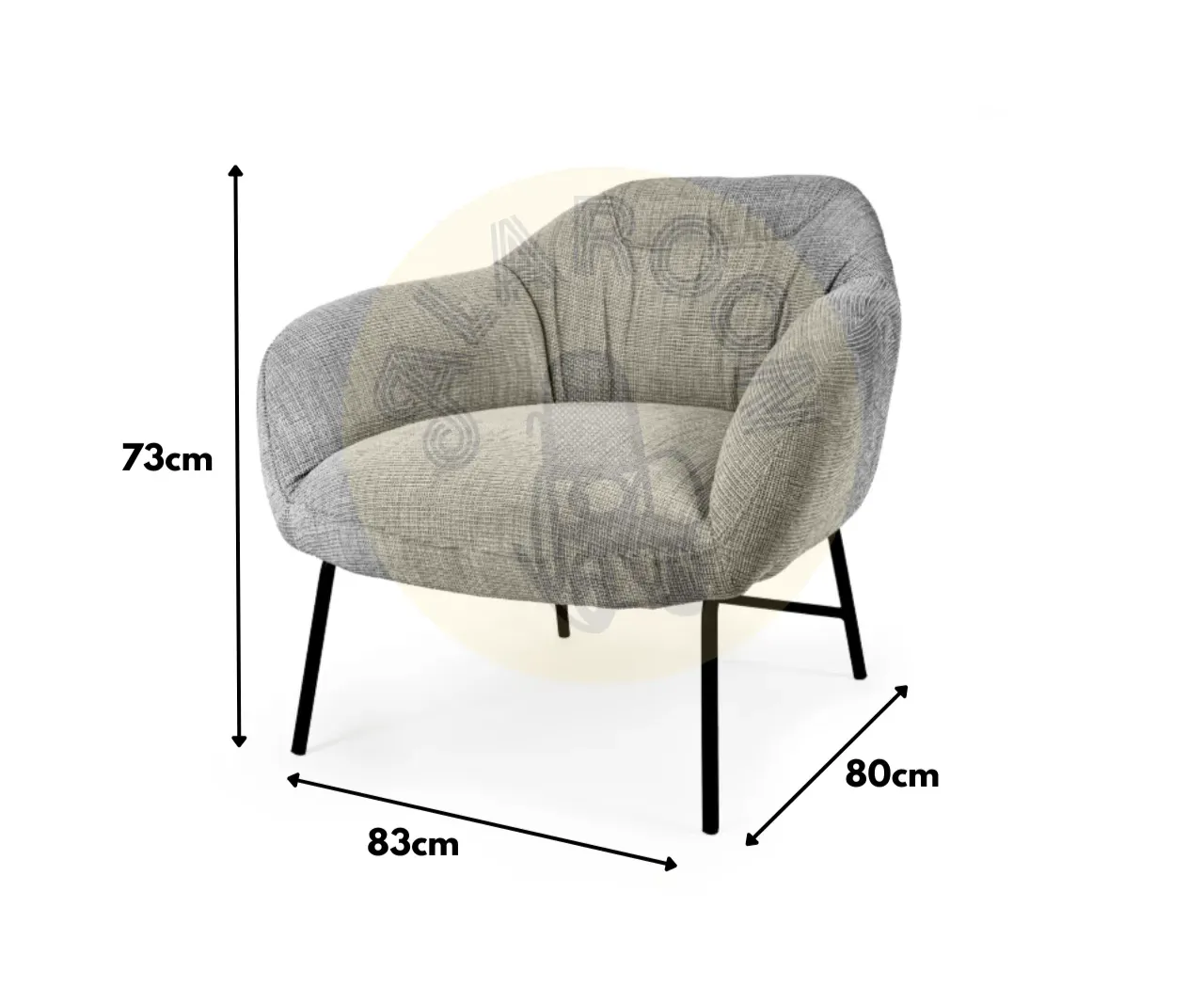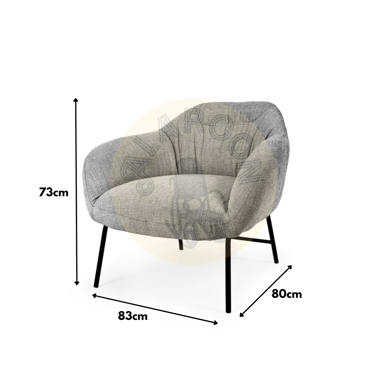 Con unas medidas de 83 cm de ancho, 73 cm de alto y 80 cm de fondo, su estructura de una sola pieza integra asiento, respaldo y reposabrazos, creando un diseño envolvente y curvado que mejora la comodidad. El acolchado distribuido de forma estratégica garantiza una experiencia de descanso óptima, favoreciendo una buena postura.