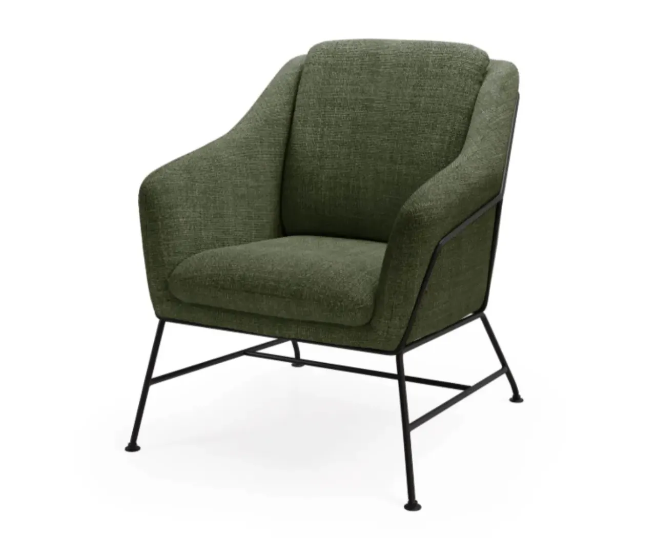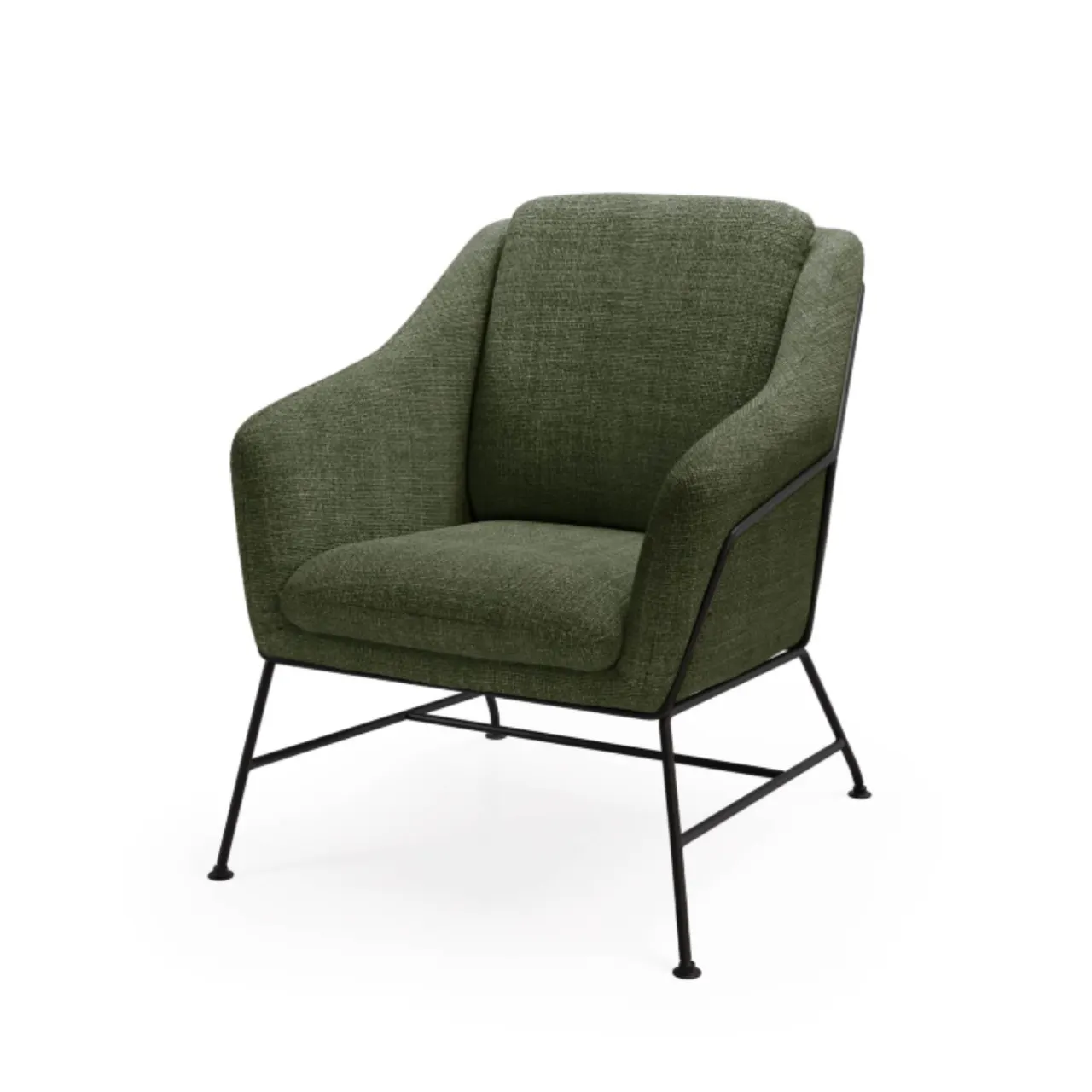 Patas de metal negro resistentes, aportando estabilidad y un contraste moderno con el tapizado Verde .