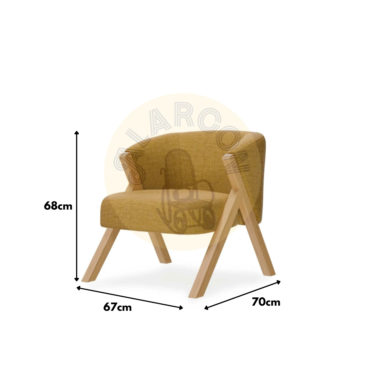 Medidas compactas (67 cm de ancho, 68 cm de alto, 70 cm de fondo) que permiten ubicarla fácilmente en diferentes espacios, como salones o rincones de lectura.