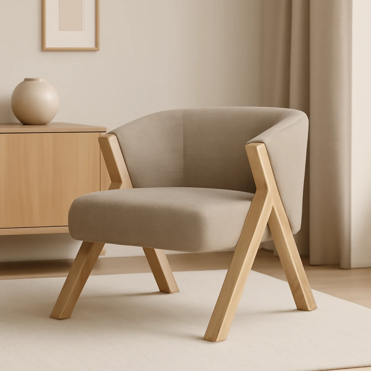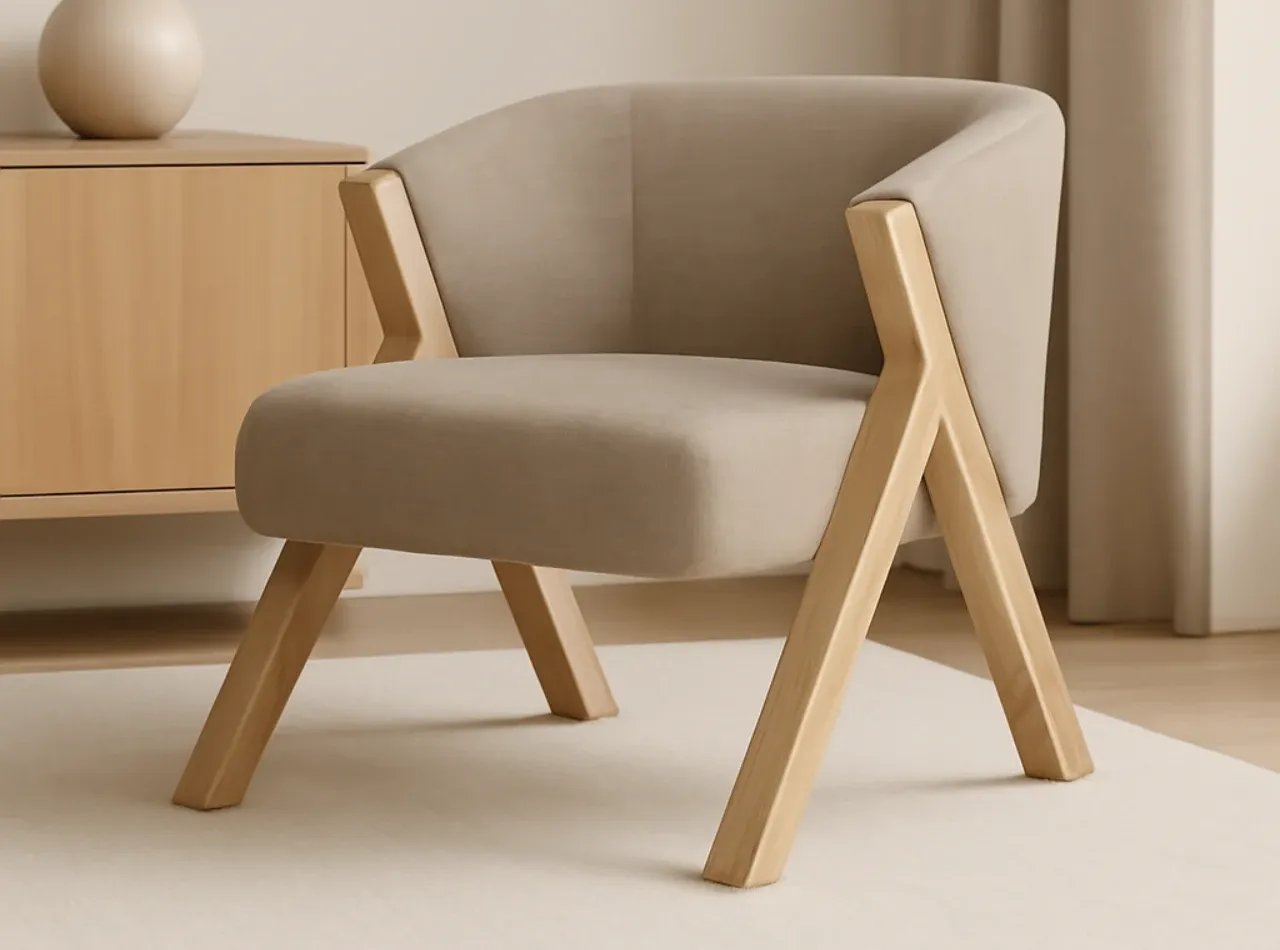 La butaca SINTRA en color taupe destaca por su diseño envolvente y elegante, siendo la opción ideal para quienes buscan una pieza de estilo y comodidad. Su estructura de patas de madera le confiere un toque sofisticado, mientras que el asiento de tejido CHANEL/TAUPE asegura una sensación de confort en todo momento.