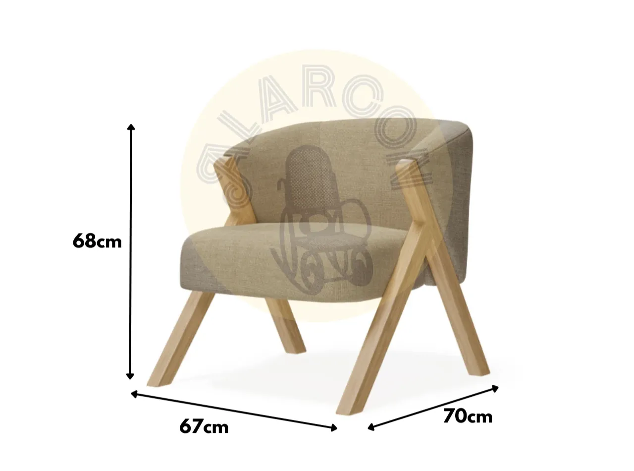 Con unas medidas de 67 cm de ancho, 68 cm de alto y 70 cm de fondo, esta butaca se adapta perfectamente a cualquier espacio, ya sea en el salón, dormitorio o un rincón de lectura. Su diseño compacto la hace ideal para pequeños y grandes ambientes, sin renunciar a la calidez y el confort.