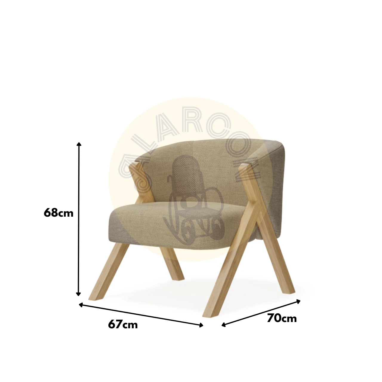 Medidas compactas (67 cm de ancho, 68 cm de alto, 70 cm de fondo) que permiten ubicarla fácilmente en diferentes espacios, como salones o rincones de lectura.
