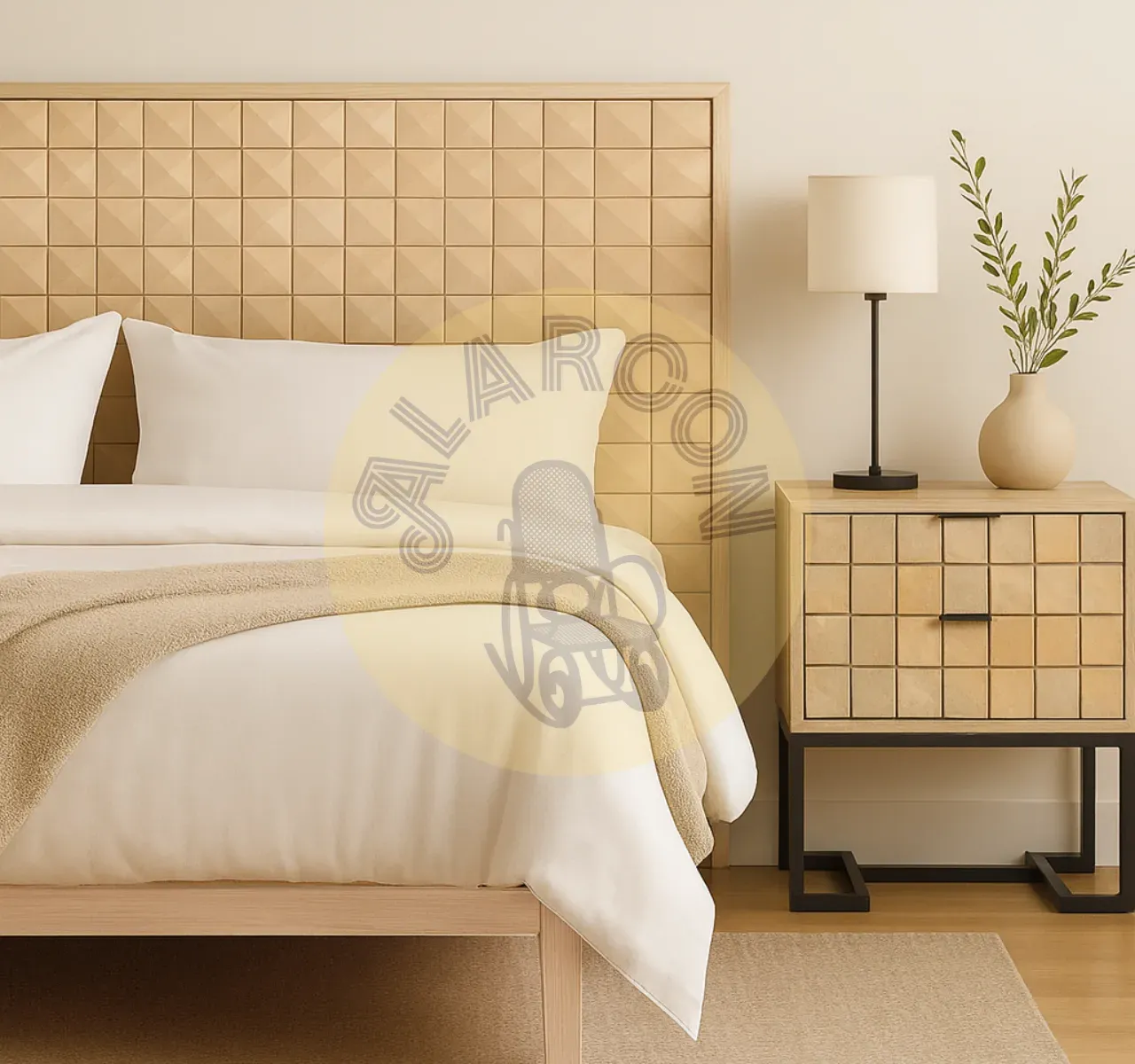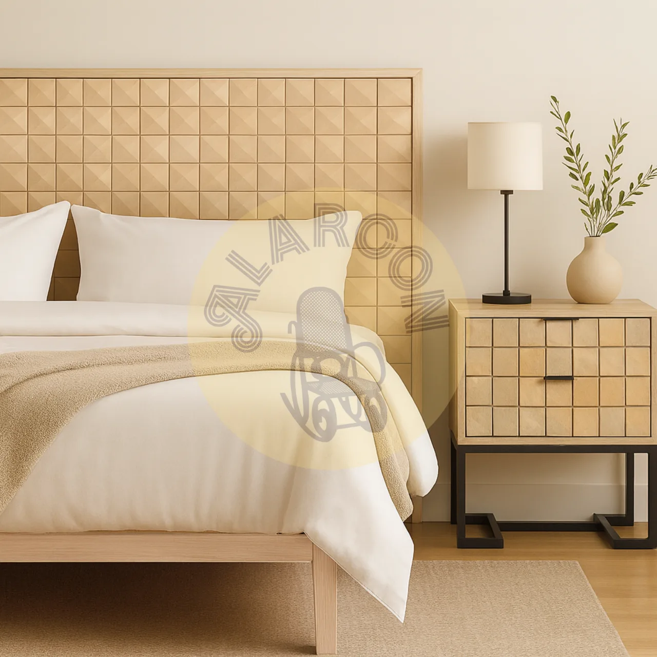 El patrón de pequeñas pirámides truncadas aporta un estilo moderno y decorativo, convirtiéndose en un punto focal dentro del dormitorio. La calidad de su material garantiza resistencia y durabilidad, ofreciendo un aspecto elegante y atemporal.