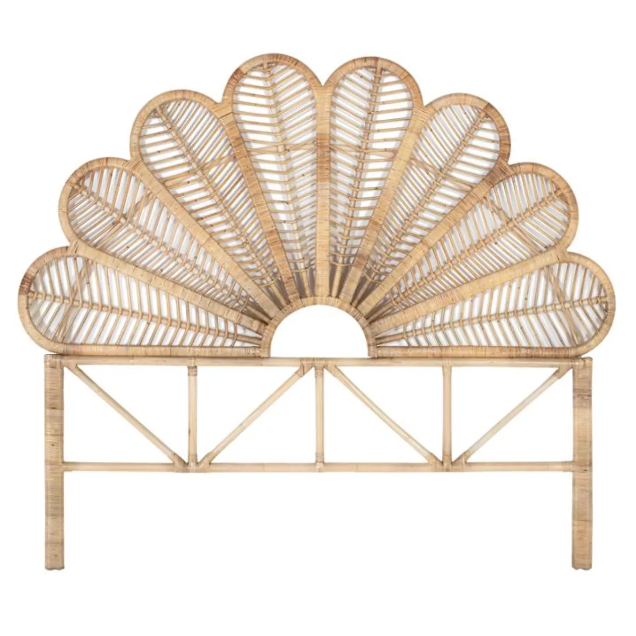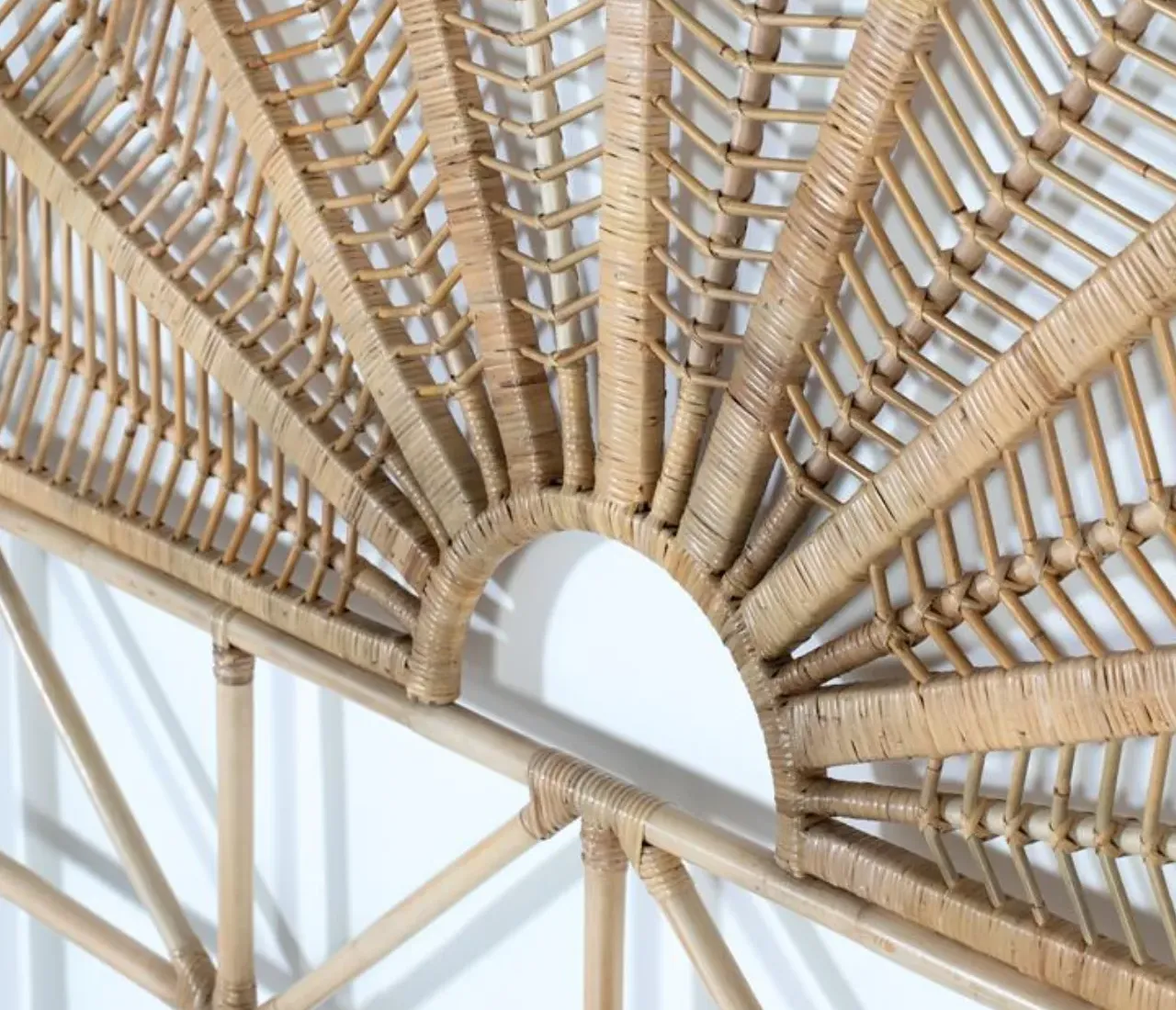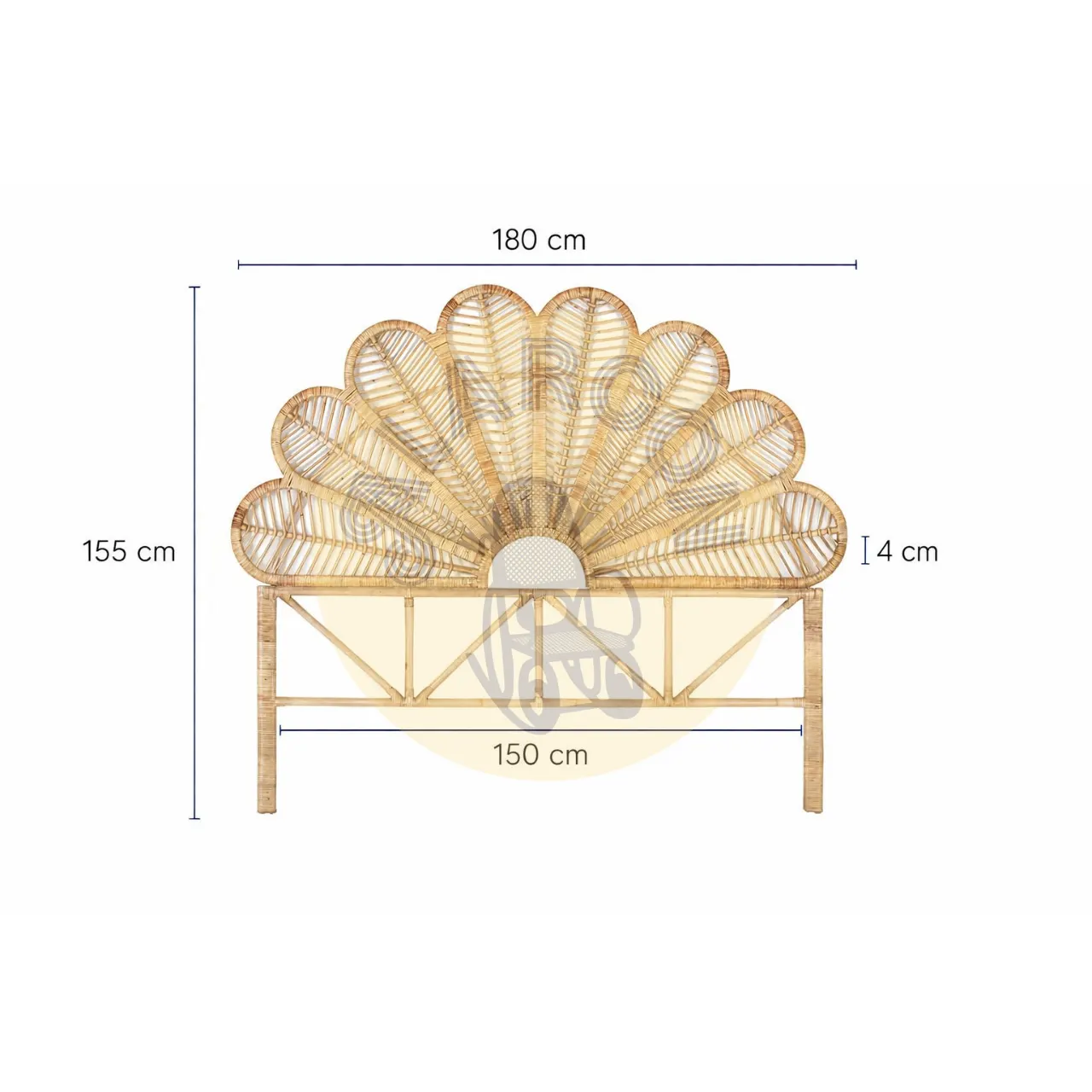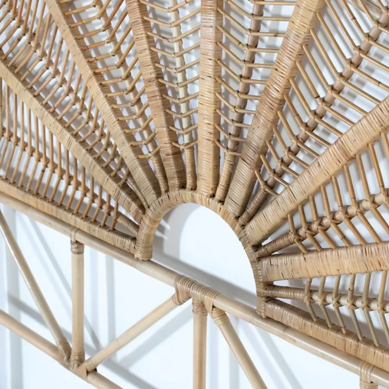 Fabricado en ratán natural, este cabecero de 180 cm aporta diseño y carácter a la cama doble, encajando con interiores de estilo boho y ambientes de decoración natural. Su acabado artesanal y hecho a mano refuerza una estética cálida y atemporal.