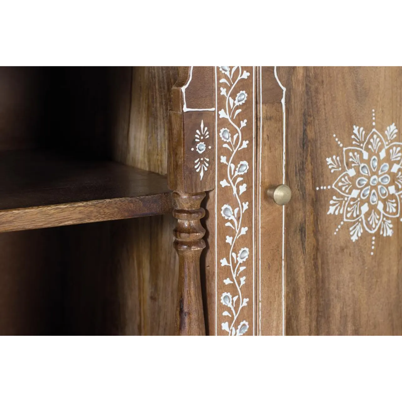 La característica más intrigante de este mueble son sus detalles pintados a mano, que añaden un toque de singularidad y encanto. Los tonos natural y blanco se fusionan con suavidad, conjugando estilo y practicidad en un solo producto.