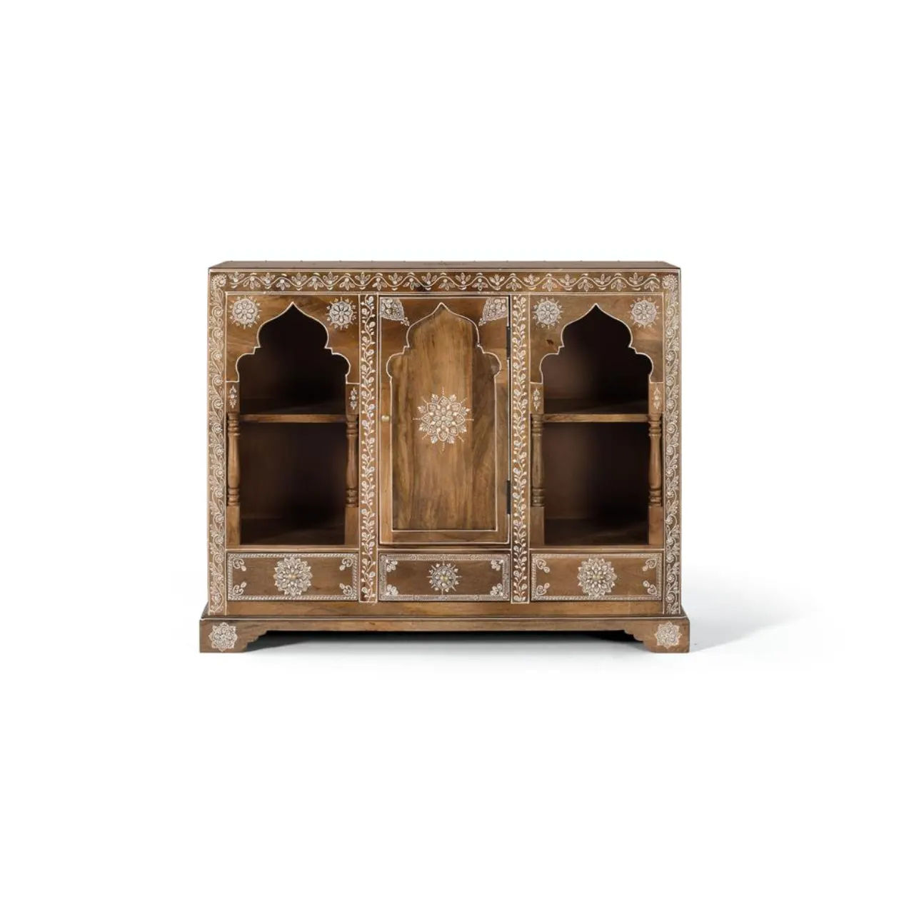 La Consola 1 Puerta y 3 Cajones emerge como una elección excepcional para el amante del mueble sobrio y artístico. Fabricada en madera de mango, esta pieza integra a la perfección diseño y funcionalidad en cualquier espacio.