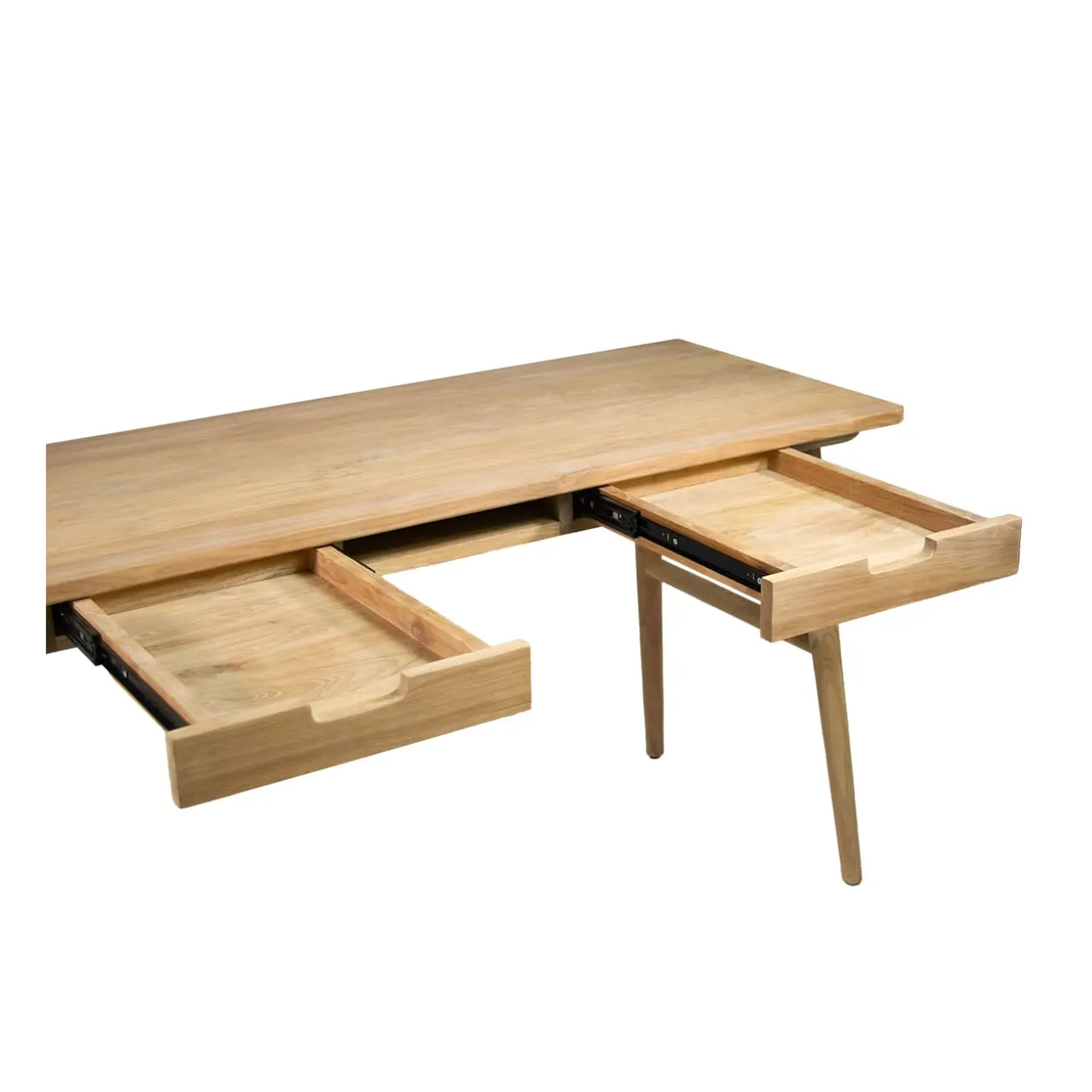 El escritorio Borneo está fabricado en madera de teca maciza, un material resistente y duradero que aporta un estilo natural y artesanal a cualquier espacio de trabajo.