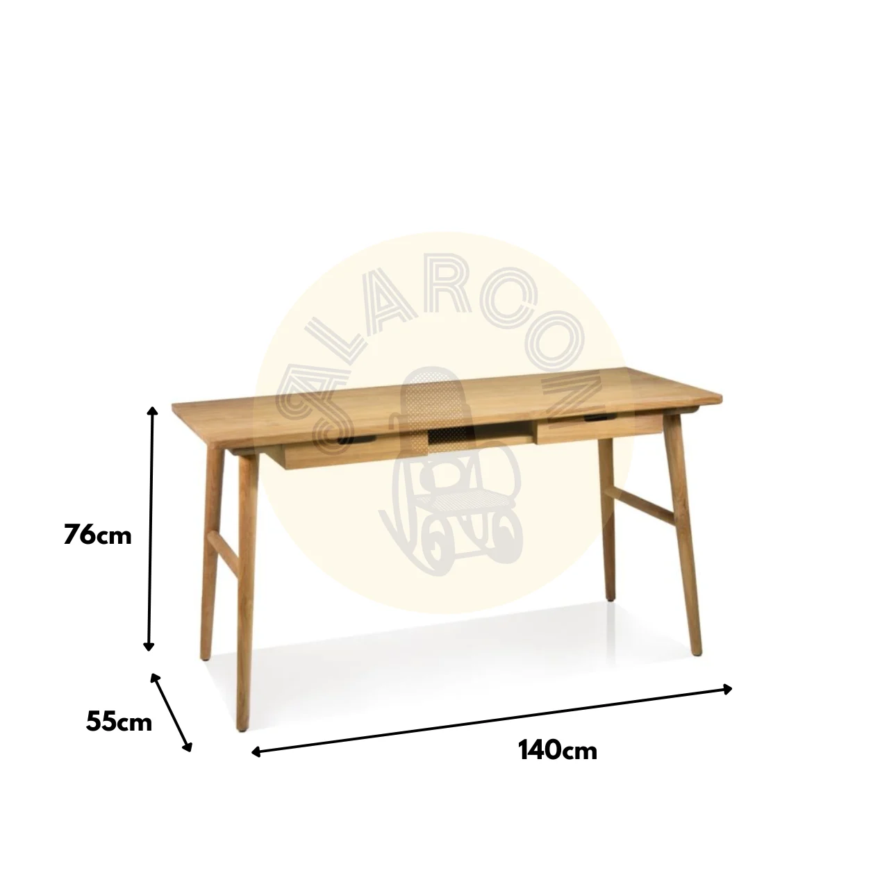 Con unas medidas de 140 x 55 x 76 cm, incorpora 2 cajones prácticos que ofrecen capacidad de almacenamiento y funcionalidad, requiriendo un montaje sencillo para su uso.