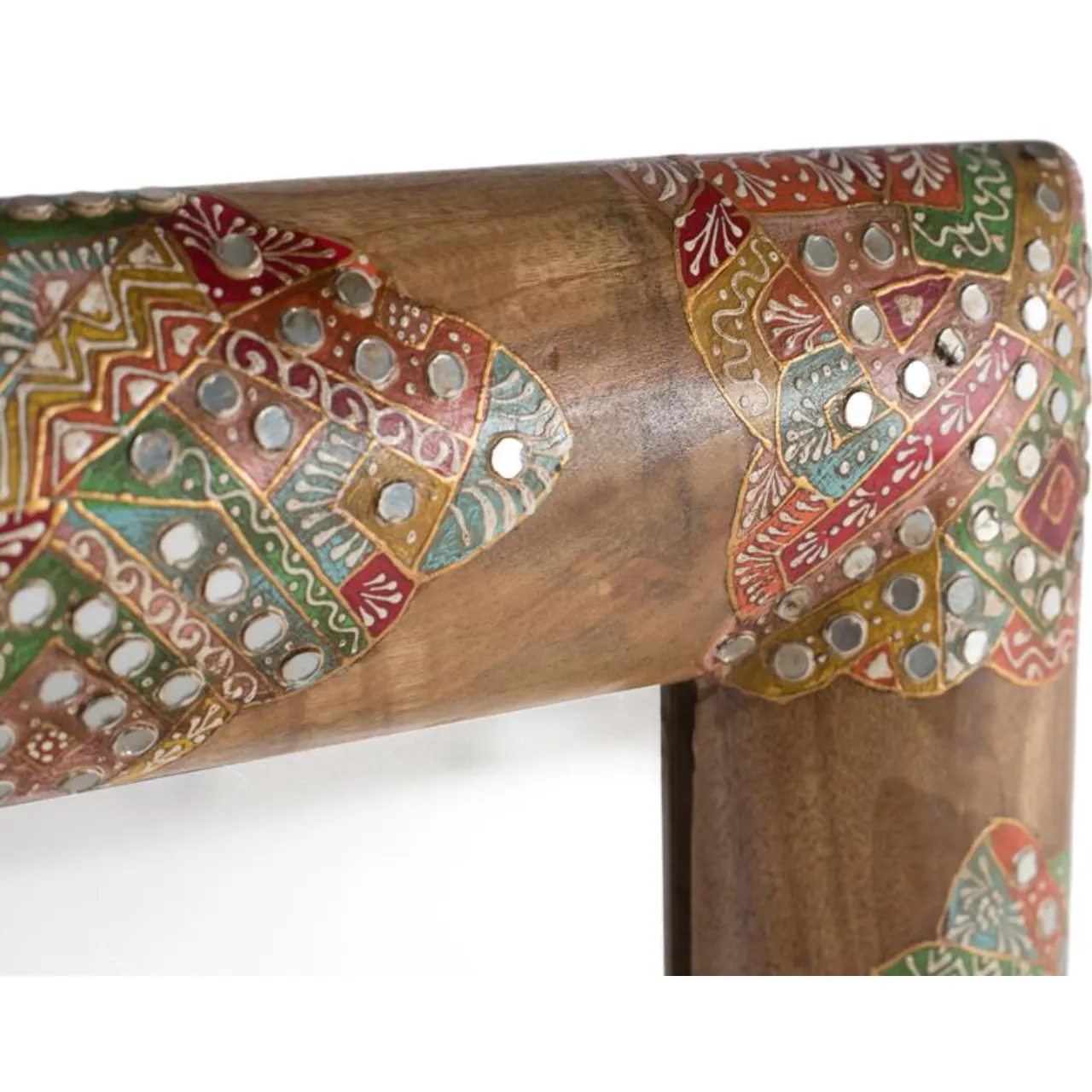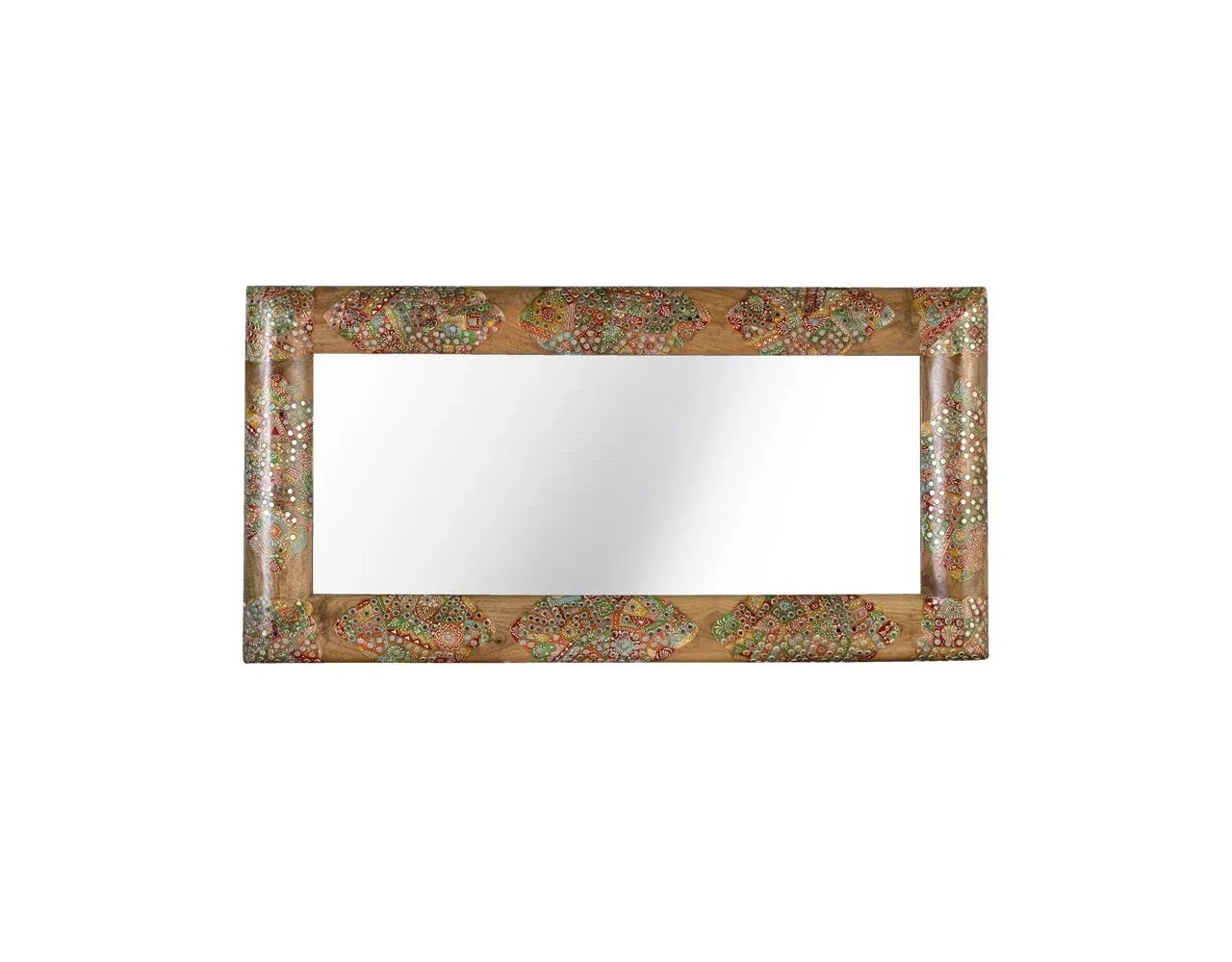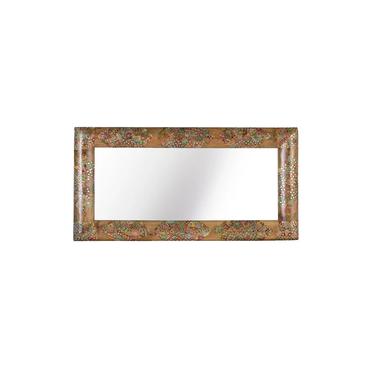 Con este espejo de pared transformarás cualquier estancia en un espacio lleno de personalidad. Su marco elaborado en madera maciza de mango destaca por un diseño artesanal que combina mosaicos coloridos de estilo étnico, perfectos para dar carácter a tu decoración.