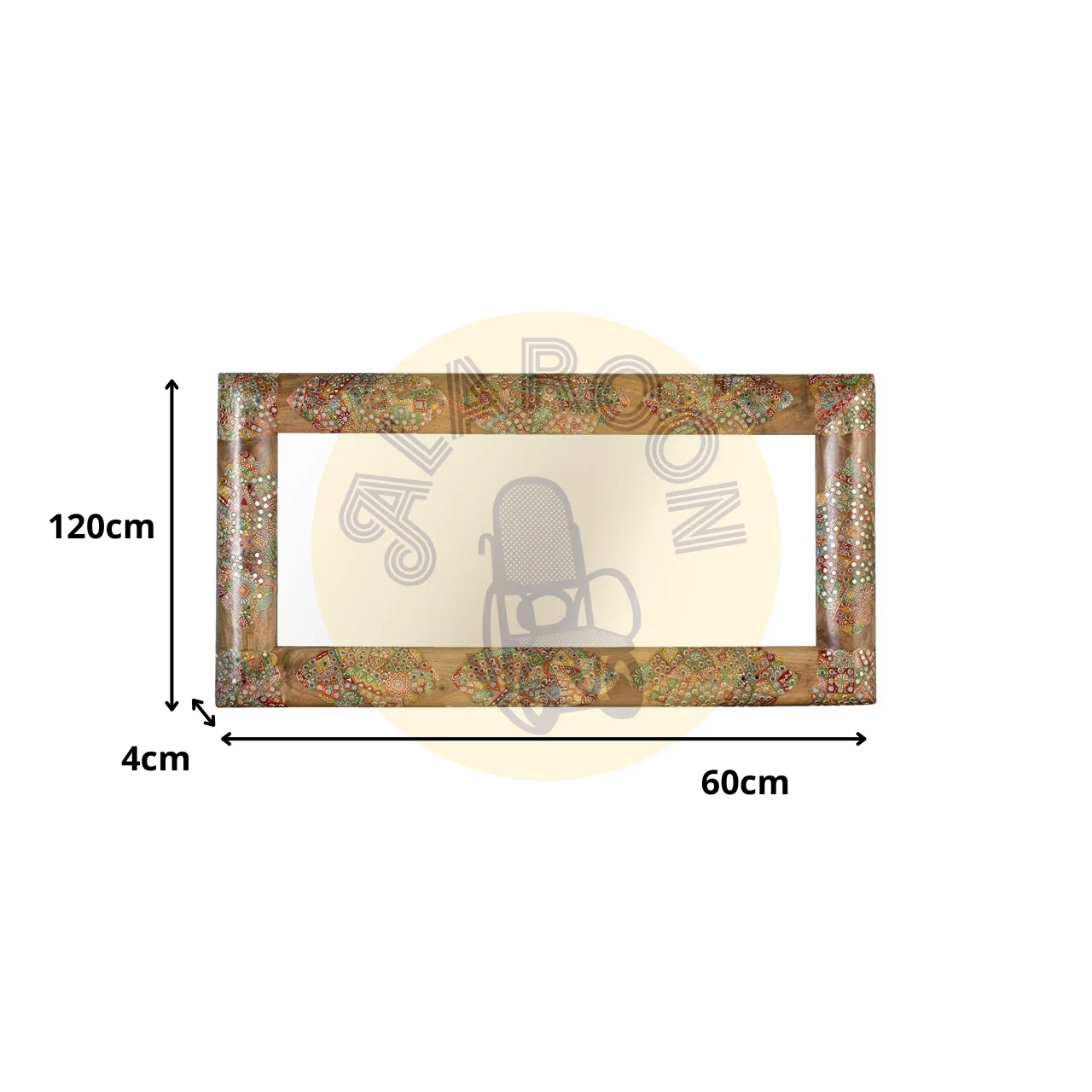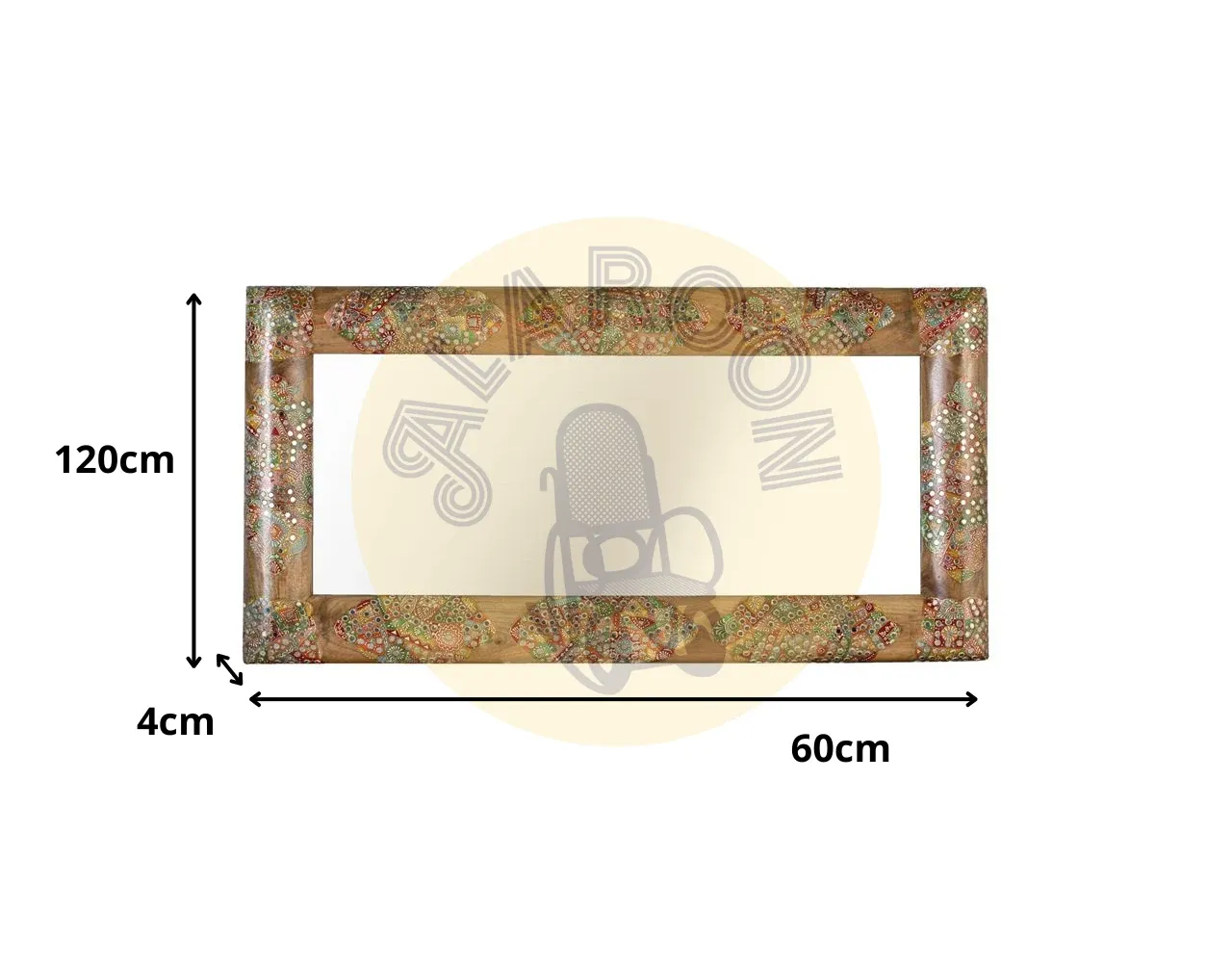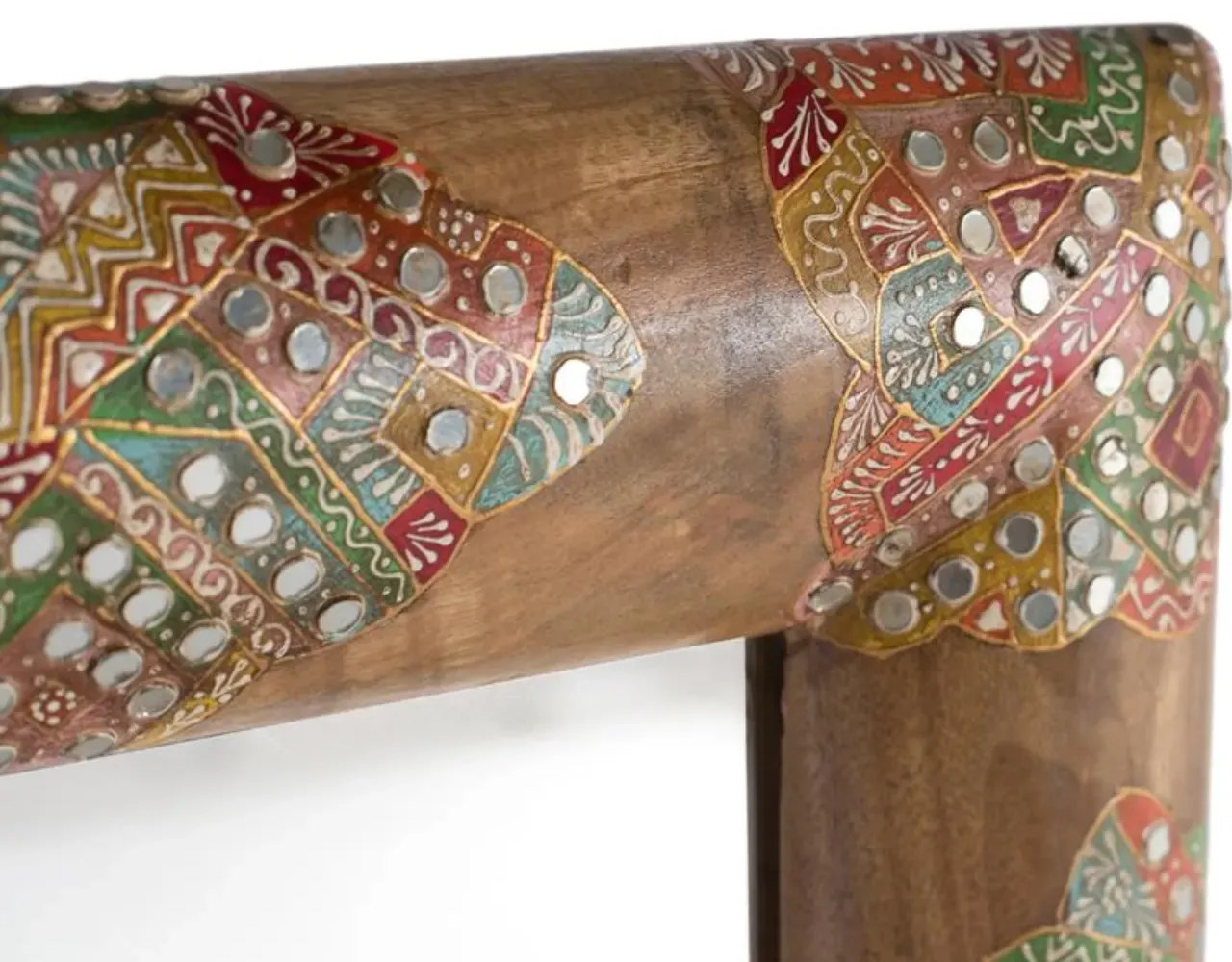 Con este espejo de pared transformarás cualquier estancia en un espacio lleno de personalidad. Su marco elaborado en madera maciza de mango destaca por un diseño artesanal que combina mosaicos coloridos de estilo étnico, perfectos para dar carácter a tu decoración.