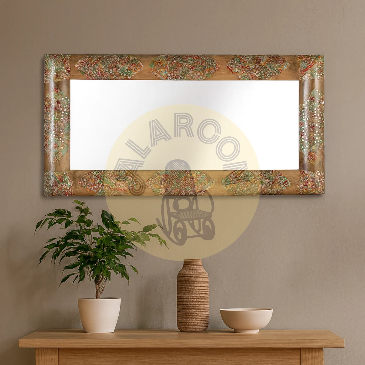 Ideal para quienes buscan un detalle original y artesanal, este espejo se convierte en un elemento decorativo único capaz de aportar calidez, color y estilo a cualquier ambiente.