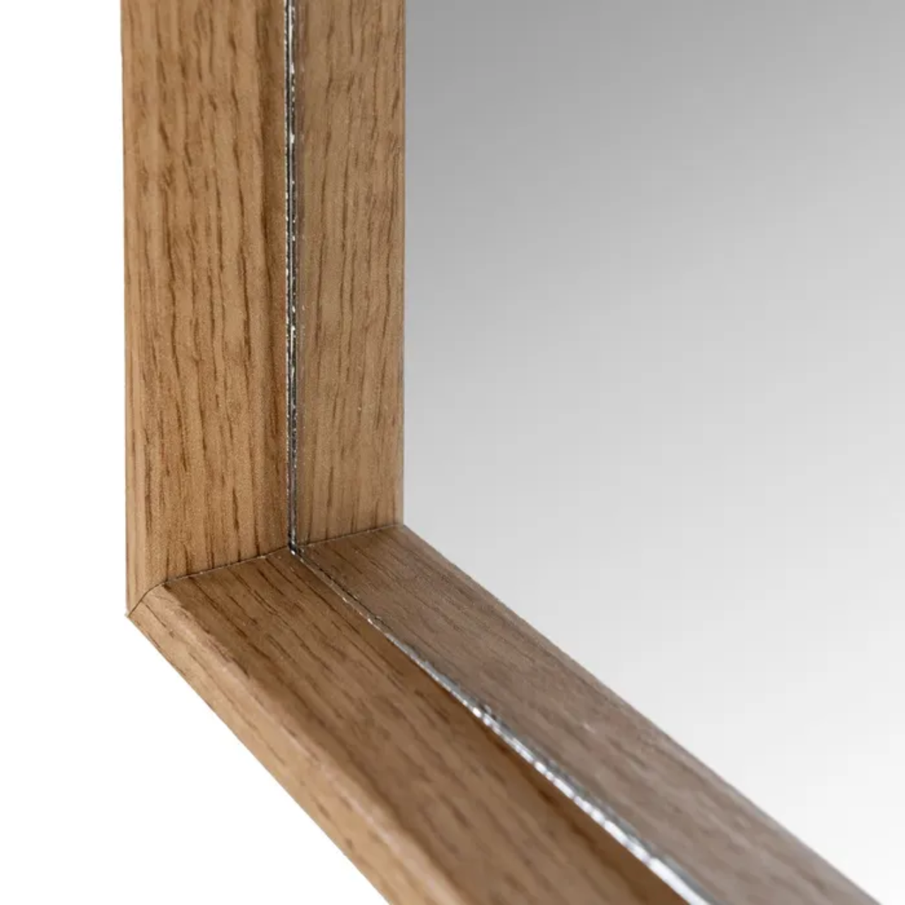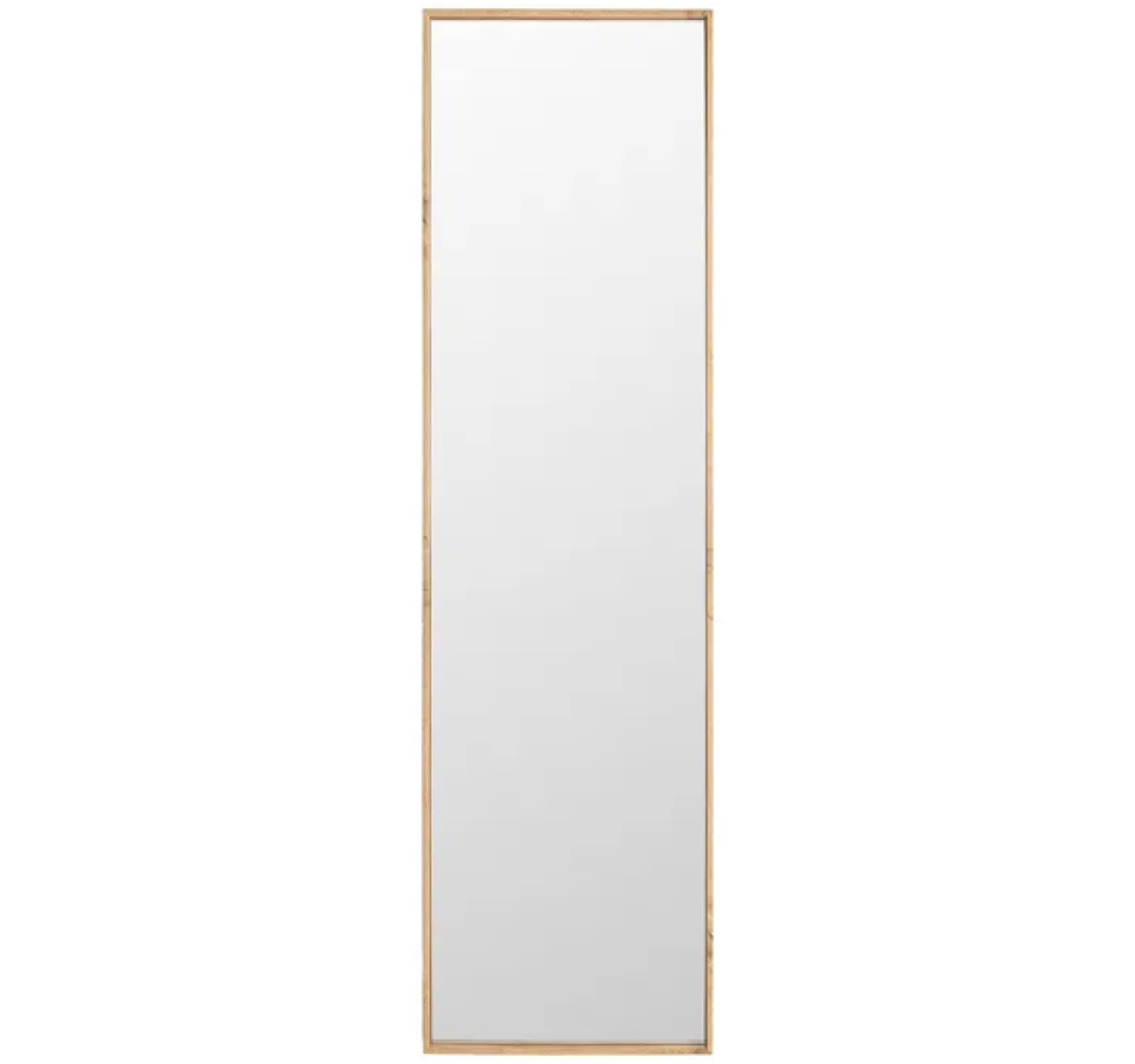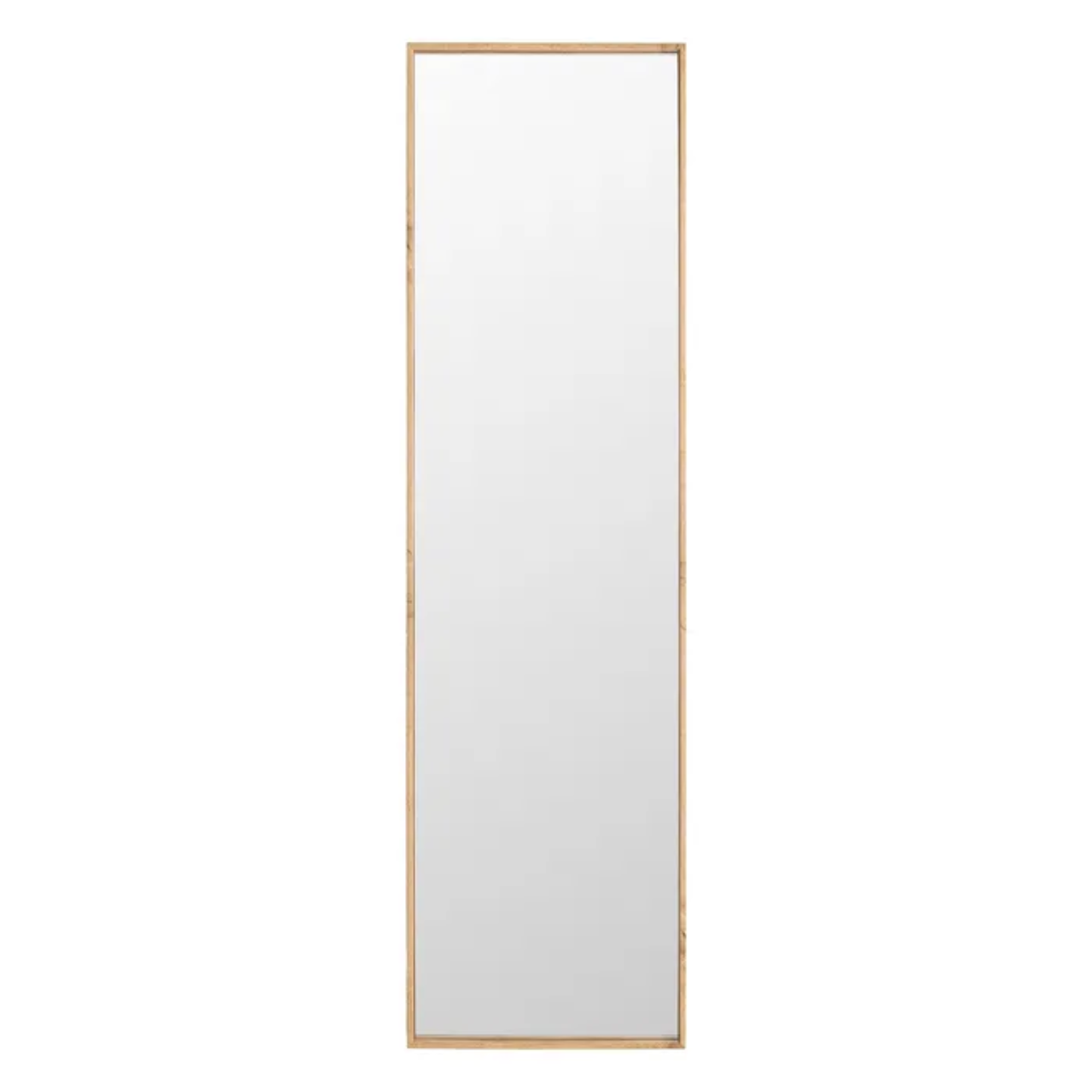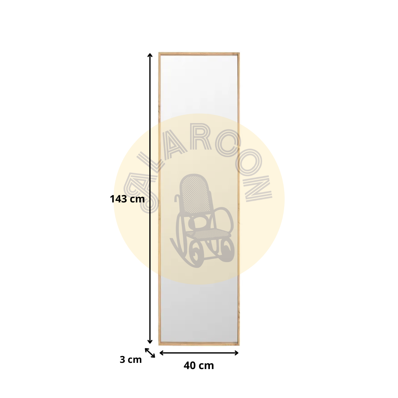 Este espejo de madera en color marrón aporta un estilo natural y limpio a cualquier estancia gracias a su diseño vertical y a su marco de DM. Su formato alargado resulta funcional para espacios donde se busca amplitud visual sin recargar la decoración.