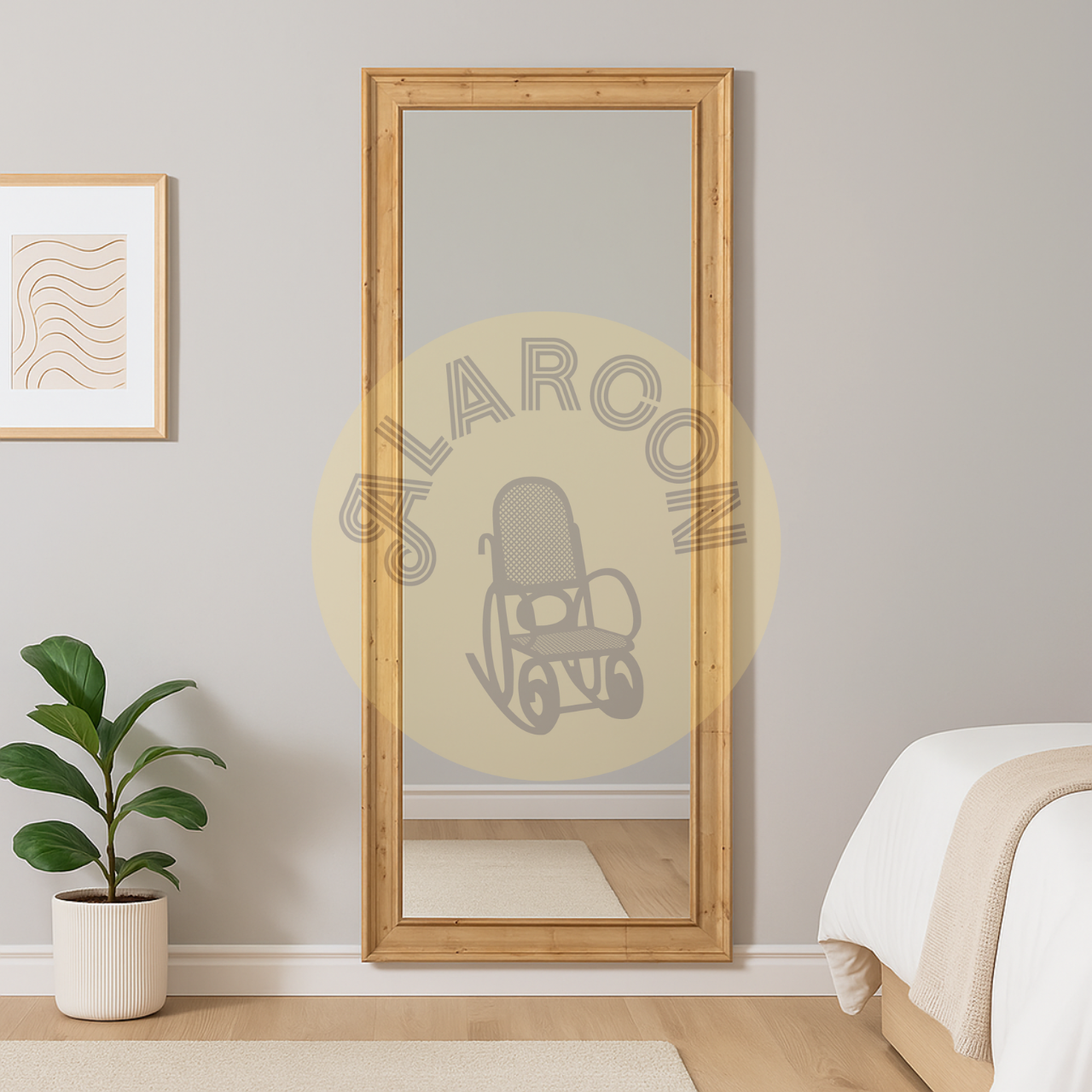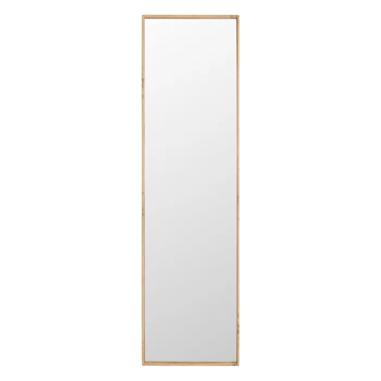 Diseña tus espacios con un espejo de pie que aporta un toque natural gracias a su marco de madera en tono marrón claro. Su formato vertical crea una sensación de amplitud y favorece una luz más uniforme en cualquier ambiente.