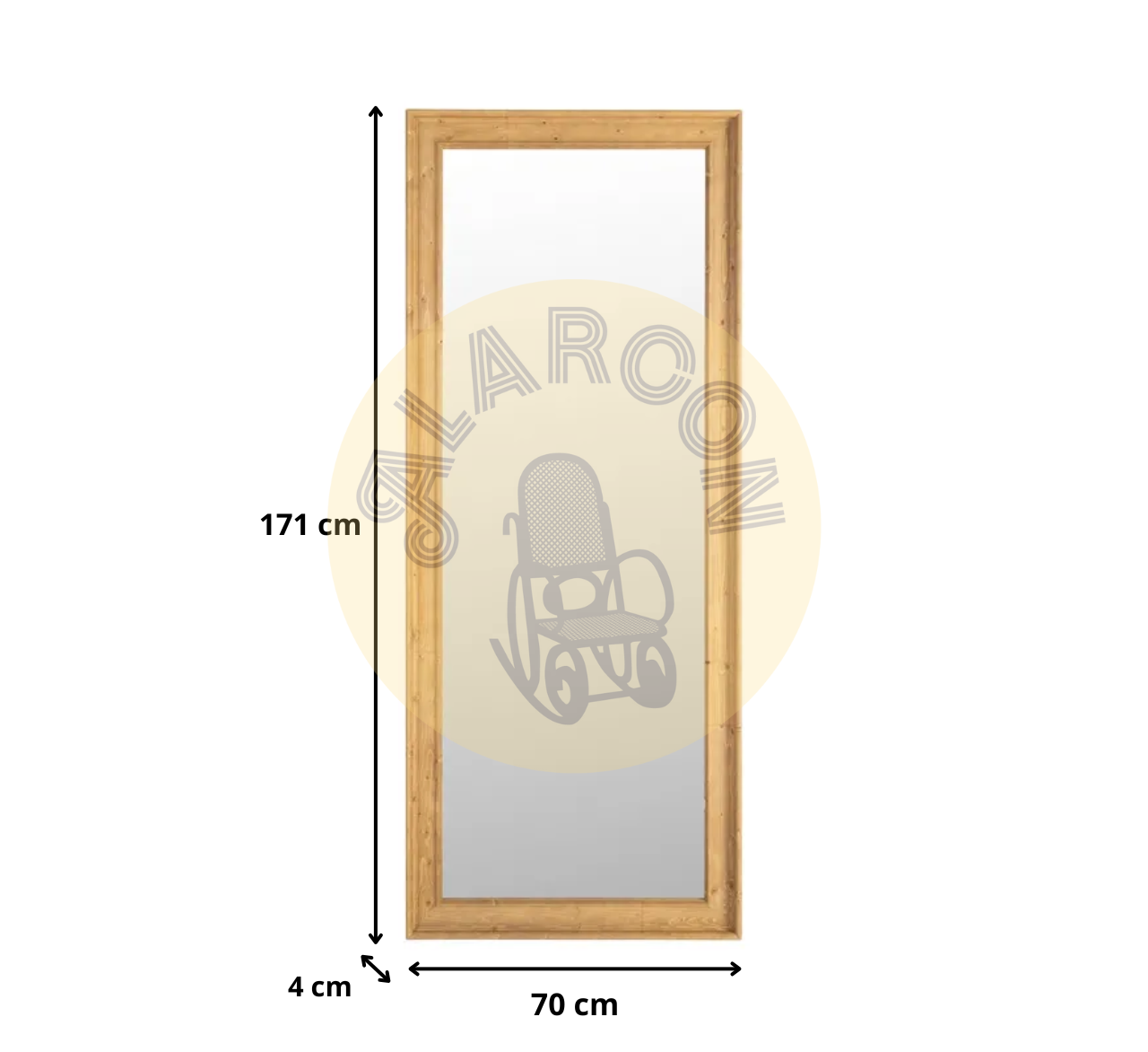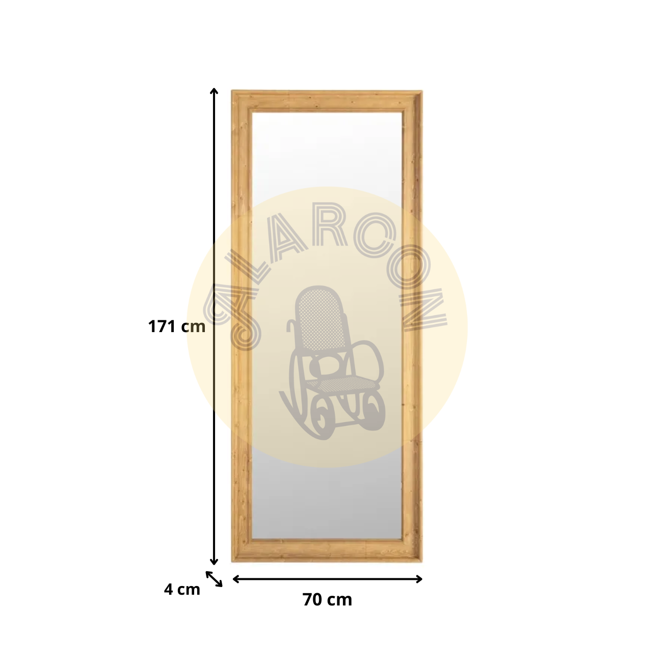 Su estructura sólida y sus medidas de 70×171 cm lo convierten en una pieza funcional para dormitorios, vestidores o recibidores. El interior del espejo, de 56×157 cm, ofrece una visión cómoda y nítida para el día a día.