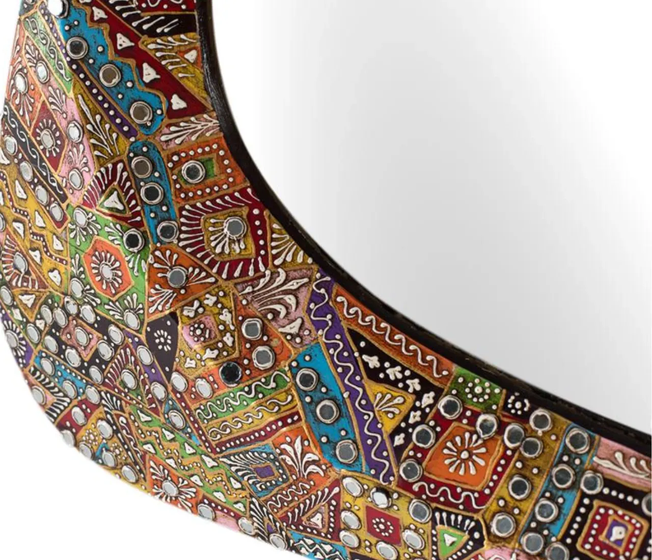 Diseño étnico artesanal exclusivo: Su marco con incrustaciones multicolor crea un espejo decorativo único que eleva el estilo y el valor estético del espacio.