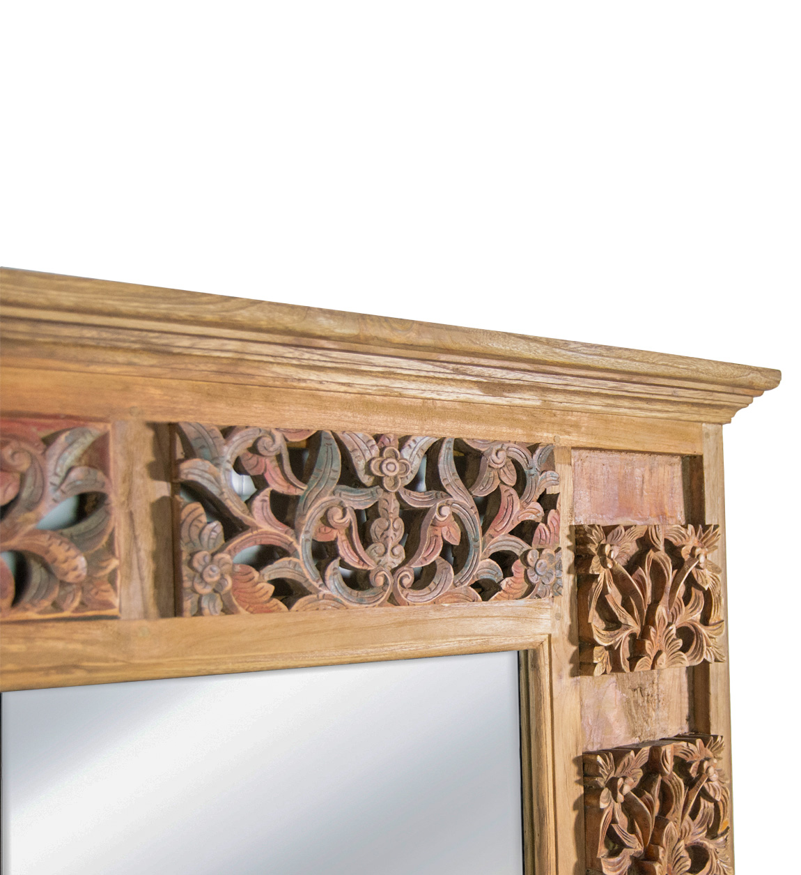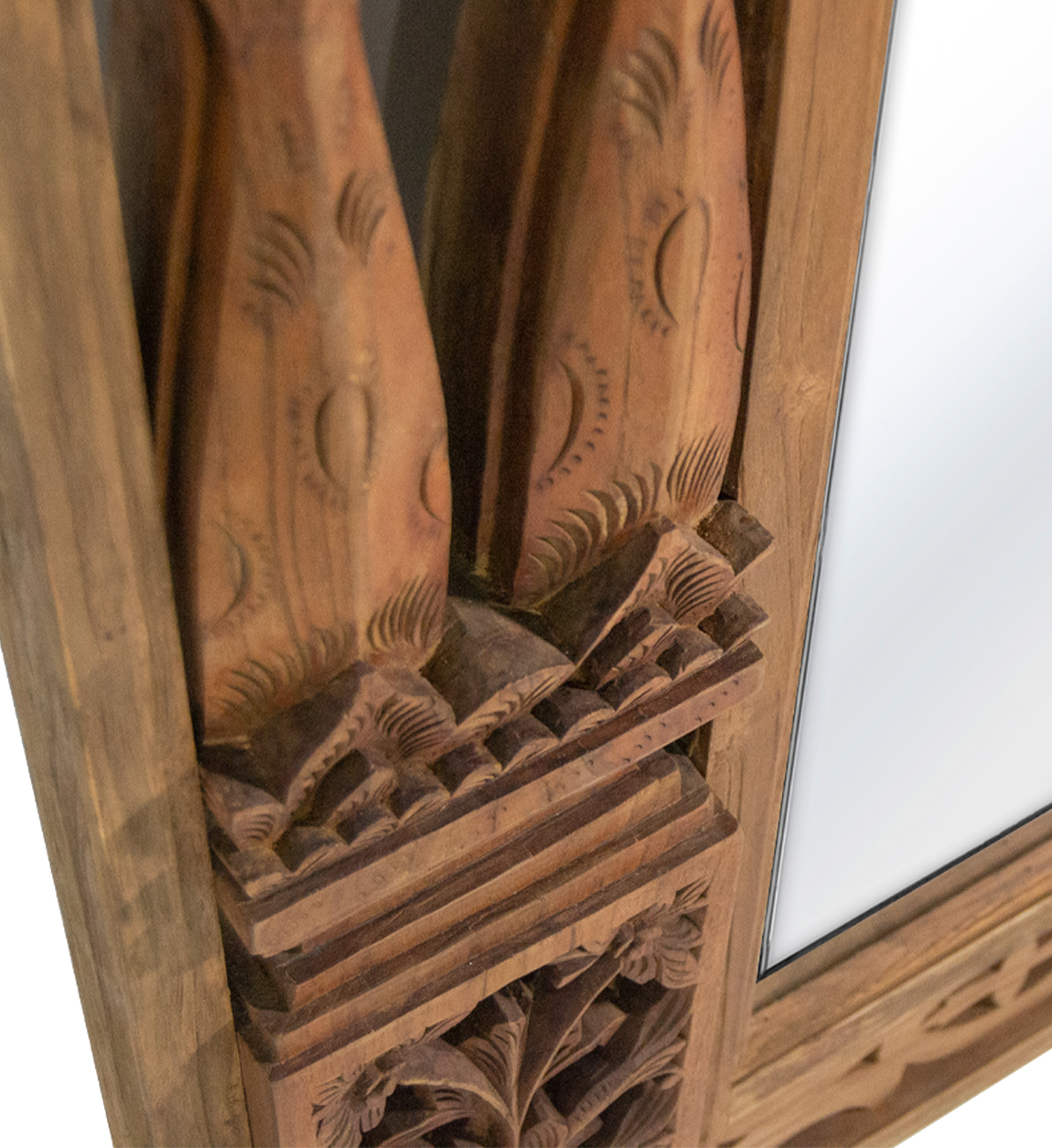Hecho con madera de teka reciclada, este producto no solo eleva su espacio con su presencia elegante sino que también resalta una declaración de estilo consciente y principios éticos. Apreciará cada pieza de madera reciclada que ha sido seleccionada para este espejo, ya que toda imperfección y marca de desgaste aporta un carácter singular y un toque genuino.
