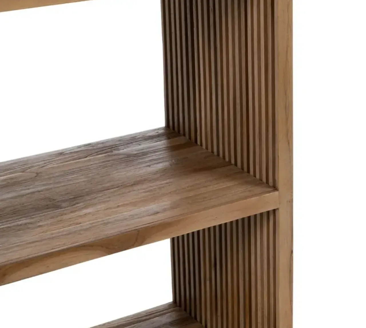 Eleva tu salón con esta estantería de madera de teca reciclada en color natural, pieza de la colección Bellamonte. Su diseño depurado aporta carácter y encaja en entornos de estilo orgánico.