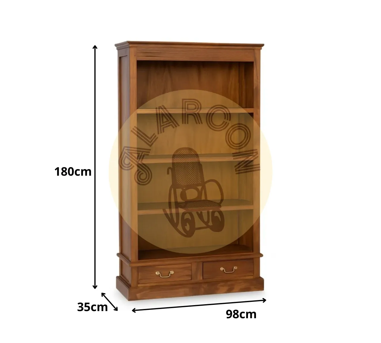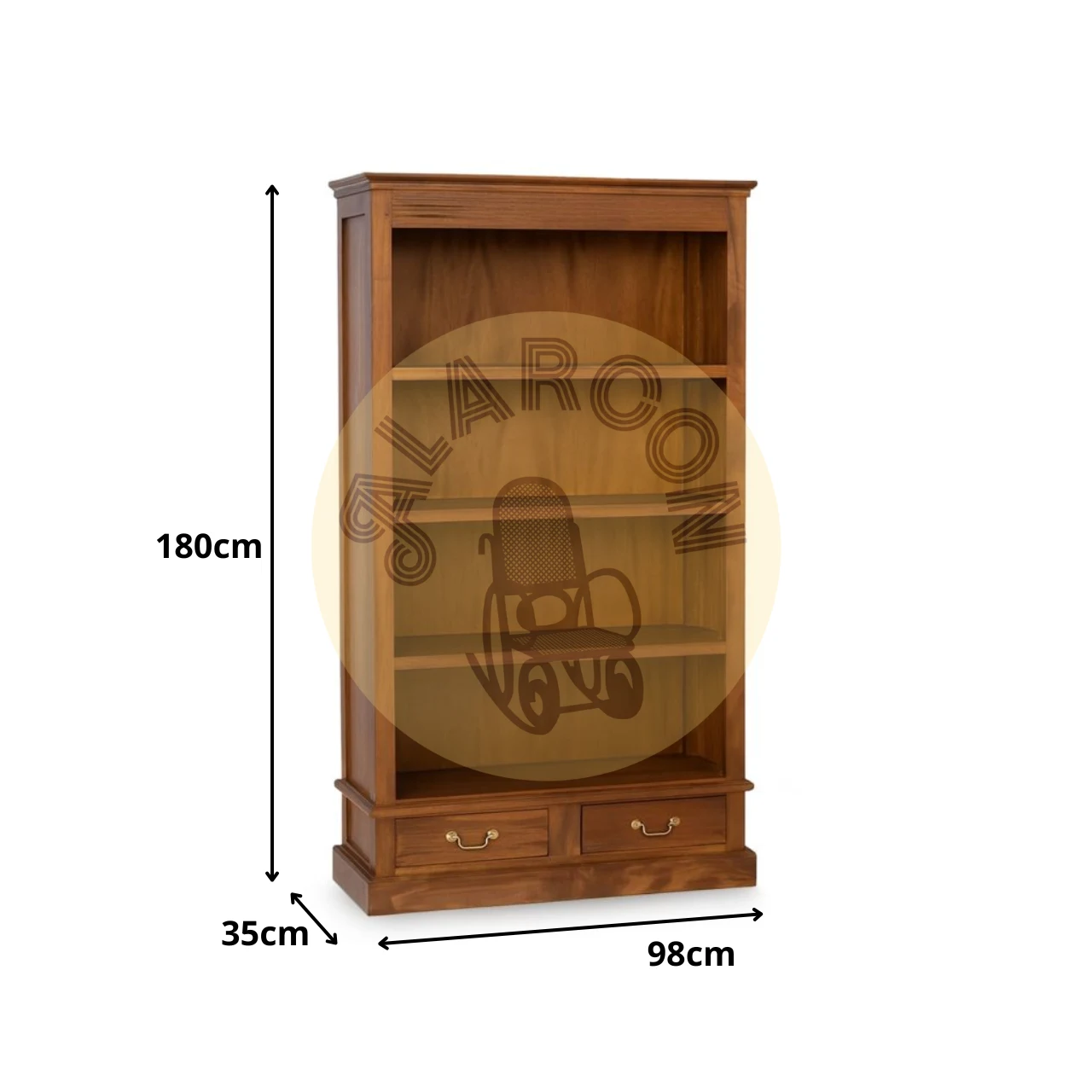 Con sus medidas de 98 x 35 x 180 cm, ofrece un espacio funcional para organizar libros, objetos decorativos o piezas de colección, manteniendo un estilo atemporal y sofisticado.