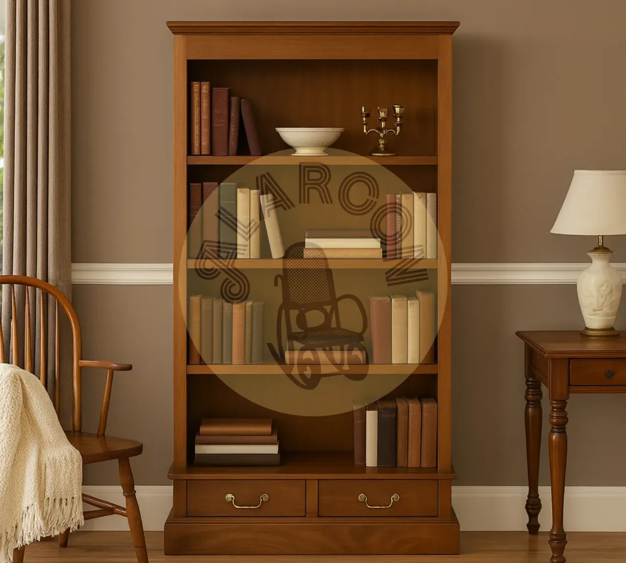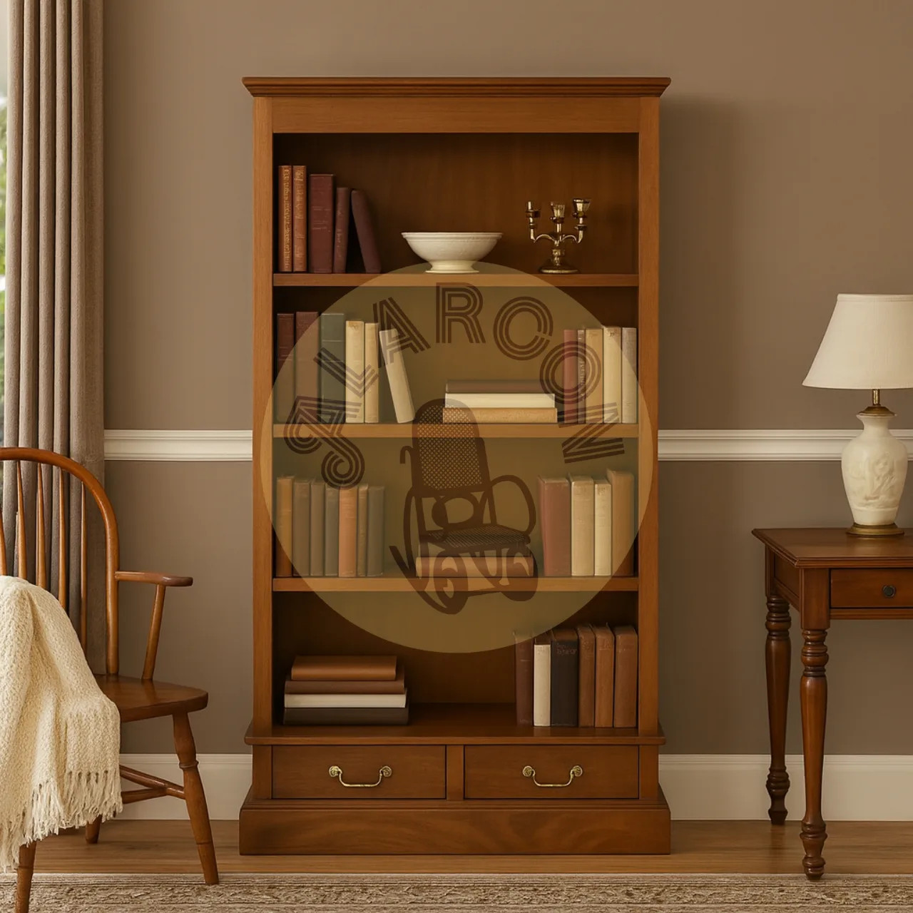 Elegancia y calidez se unen en esta librería de madera de caoba maciza, una pieza artesanal que destaca por su acabado natural y la autenticidad de sus materiales. Su diseño hecho a mano aporta carácter y distinción a cualquier estancia.