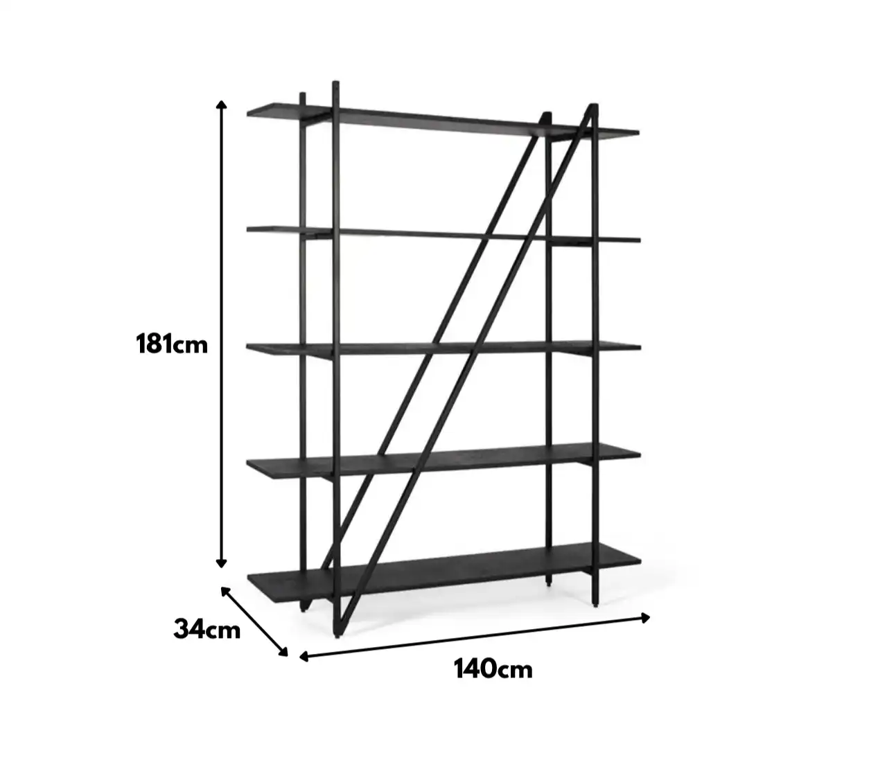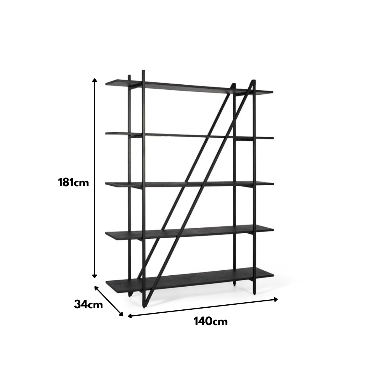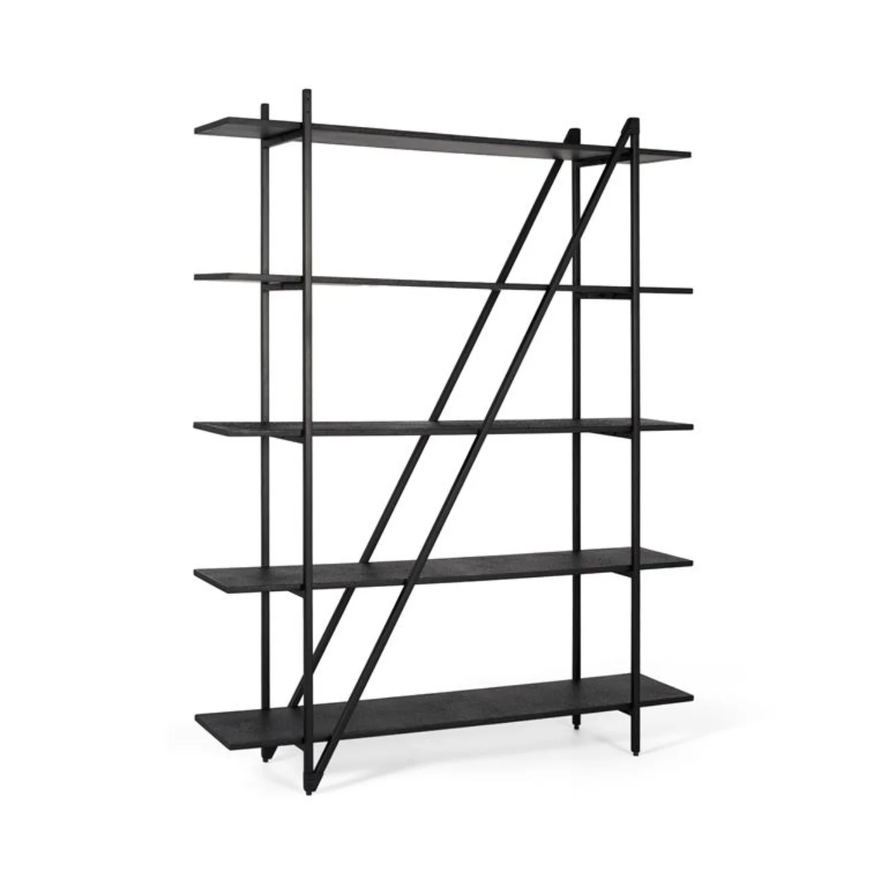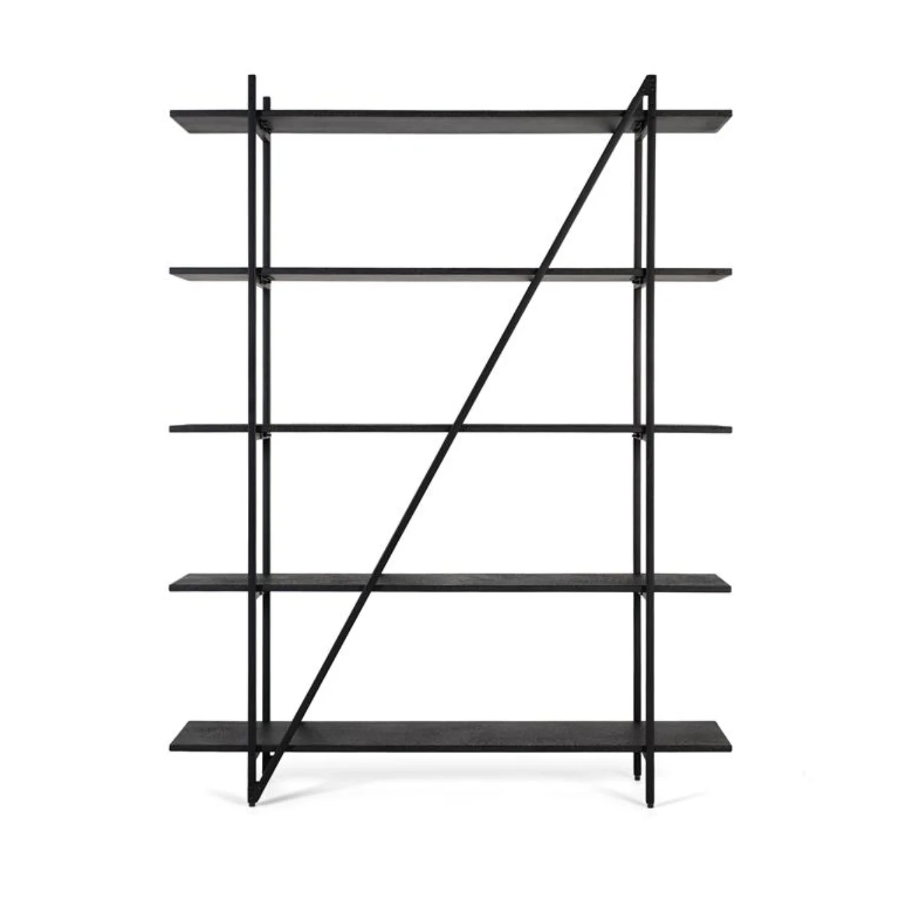 Con cinco niveles, ofrece una capacidad generosa para organizar libros, objetos decorativos o accesorios cotidianos. La disposición abierta permite que la luz atraviese la estructura, aportando ligereza visual y evitando bloqueos en la percepción del espacio.