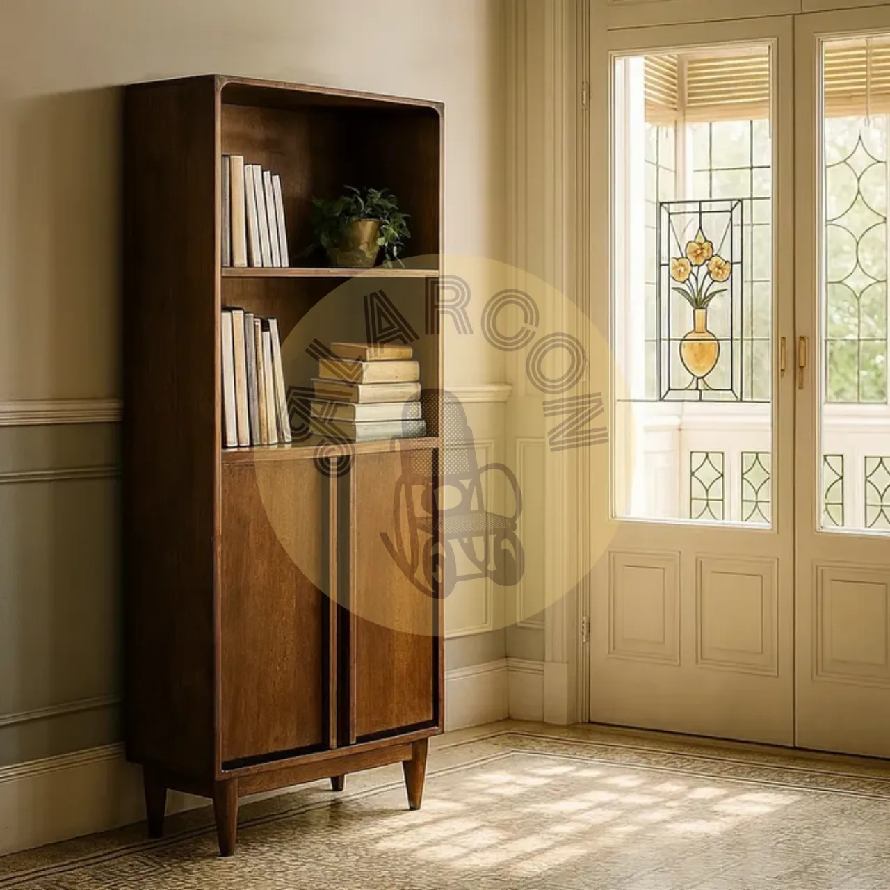 Este librero de madera de mango destaca por su diseño funcional y natural, aportando calidez a cualquier estancia. Su acabado resalta la veta de la madera, lo que lo convierte en un mueble duradero y con carácter propio.