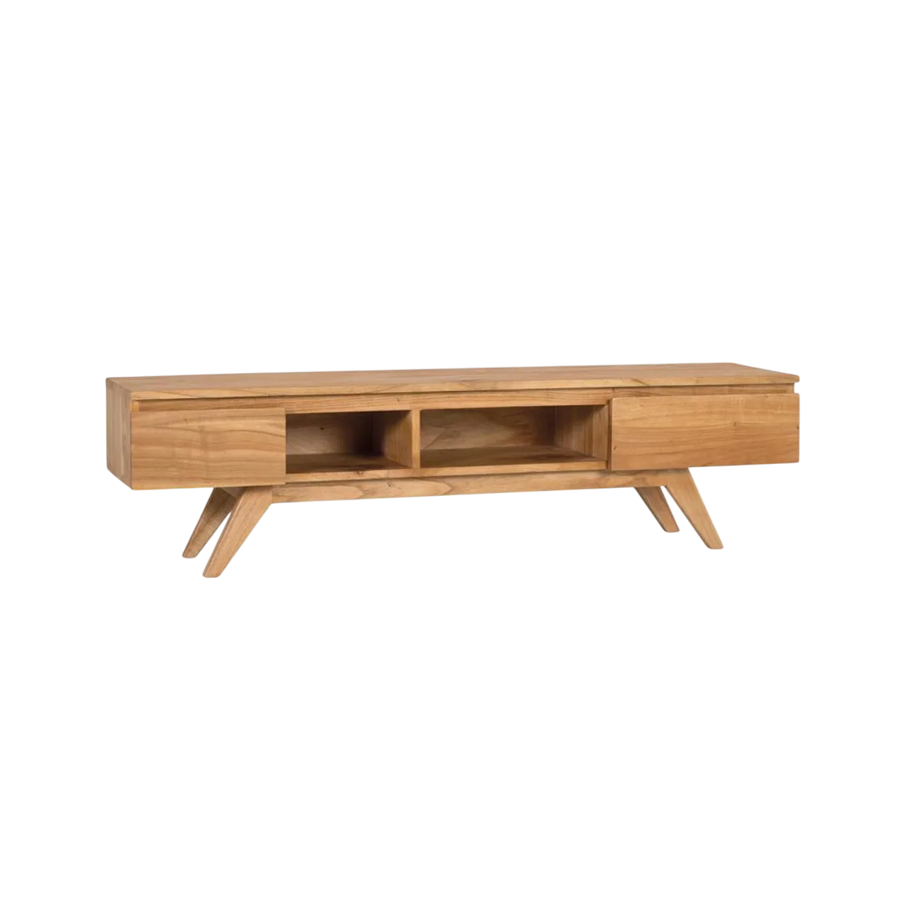 Uno de los materiales más apreciados en nuestros muebles de televisión es la madera, que añade una dosis de calidez y elegancia a cualquier espacio. Adicionalmente, la madera es un material versátil que se fusiona a la perfección con otros elementos como el metal o la fibra de madera, facilitando la creación de diseños únicos y prácticos.