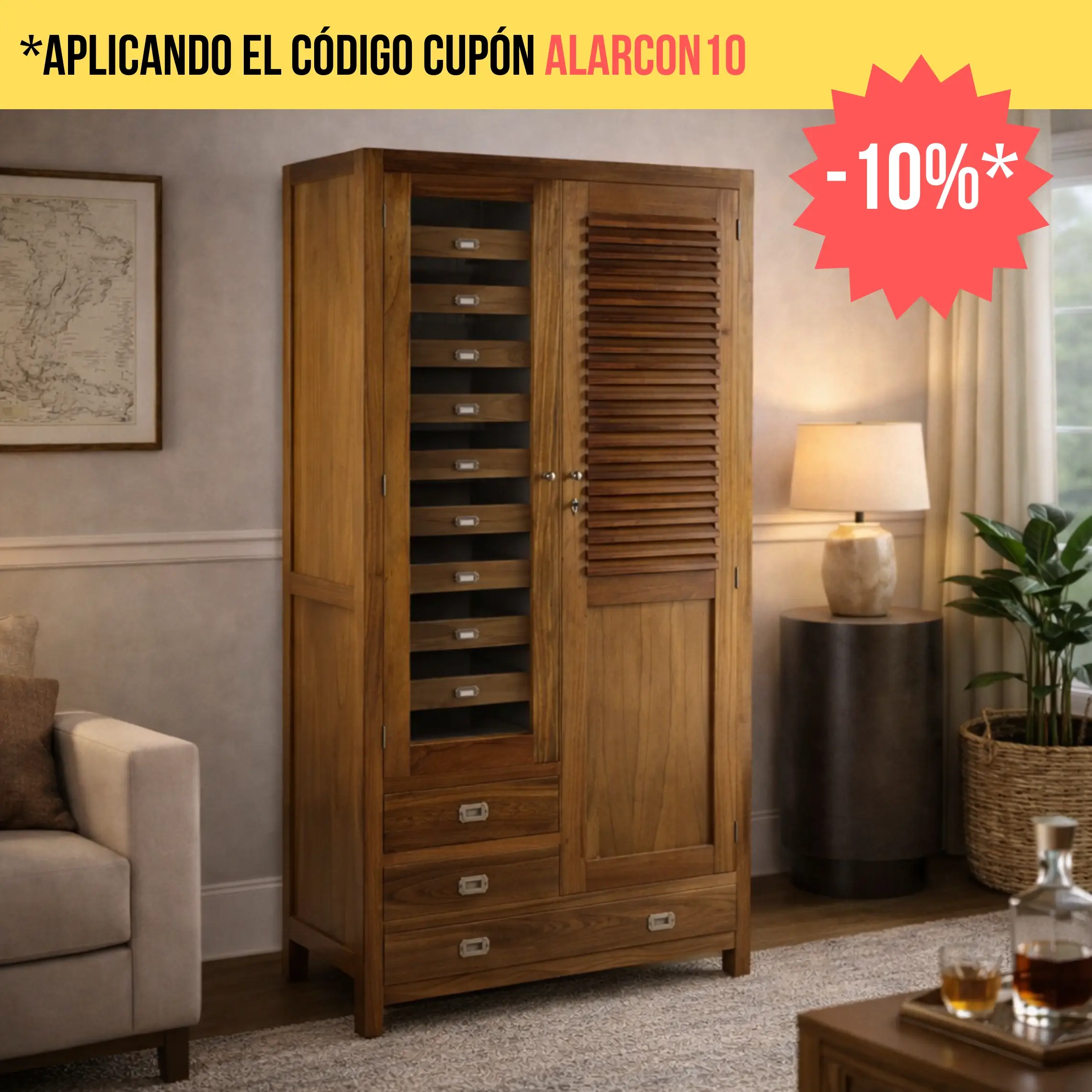 Ofrecemos una amplia variedad de armarios, tanto grandes como pequeños, para ajustarnos a tus necesidades específicas. Si buscas un estilo audaz y robusto, nuestros armarios industriales son la opción perfecta. Para un entorno exótico y acogedor, los armarios de estilo étnico serán tus mejores aliados.
