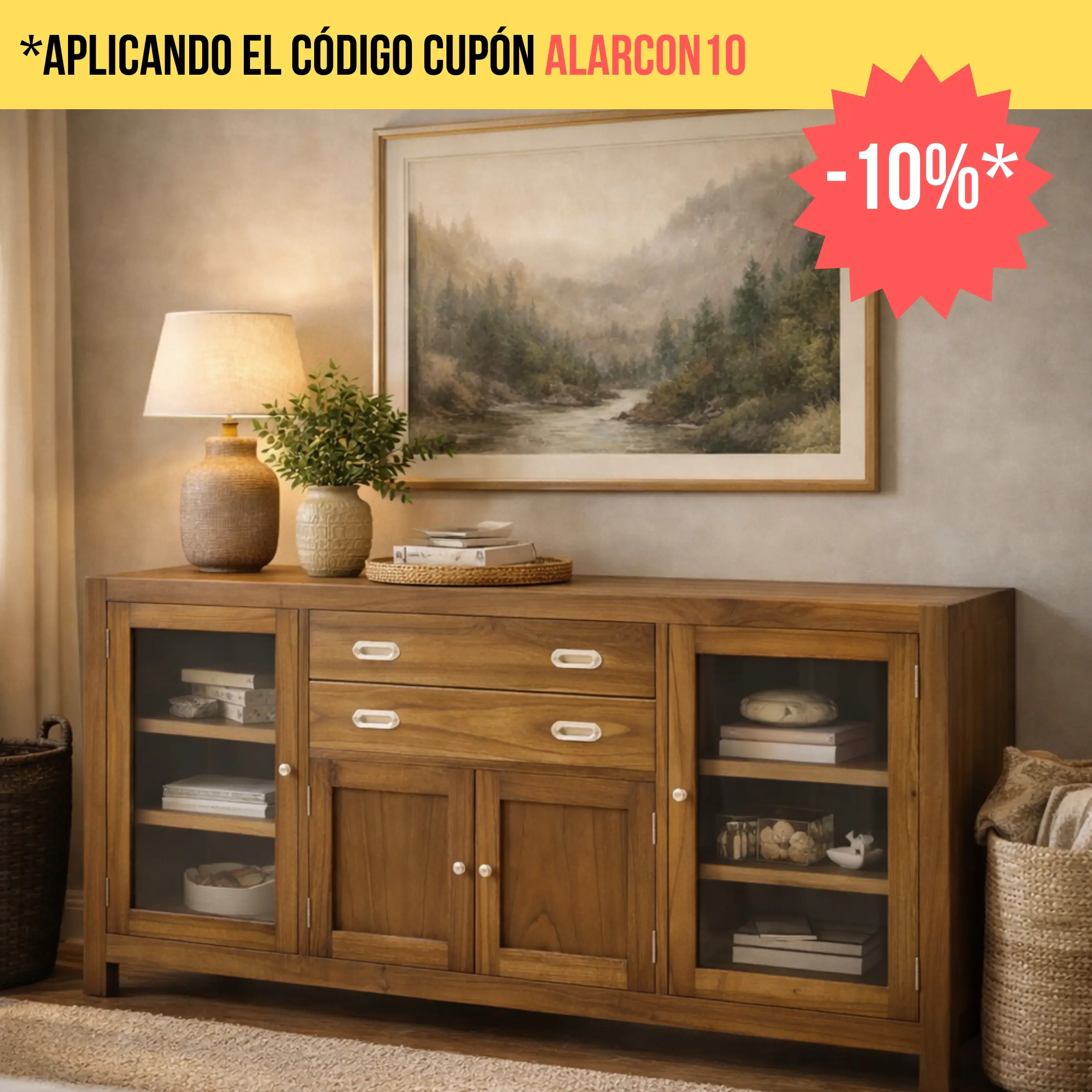 Los buffets rústicos de Moycor destacan por su autenticidad y acabados en madera natural, perfectos para crear un ambiente cálido y acogedor. Si prefieres un estilo más atrevido, nuestros buffets industriales y de estilo étnico ofrecen un carácter único y distintivo que añade personalidad a cualquier estancia. Para aquellos que buscan versatilidad y elegancia, nuestros buffets de metal y fibra natural son la opción ideal, combinando materiales duraderos con un diseño sofisticado.