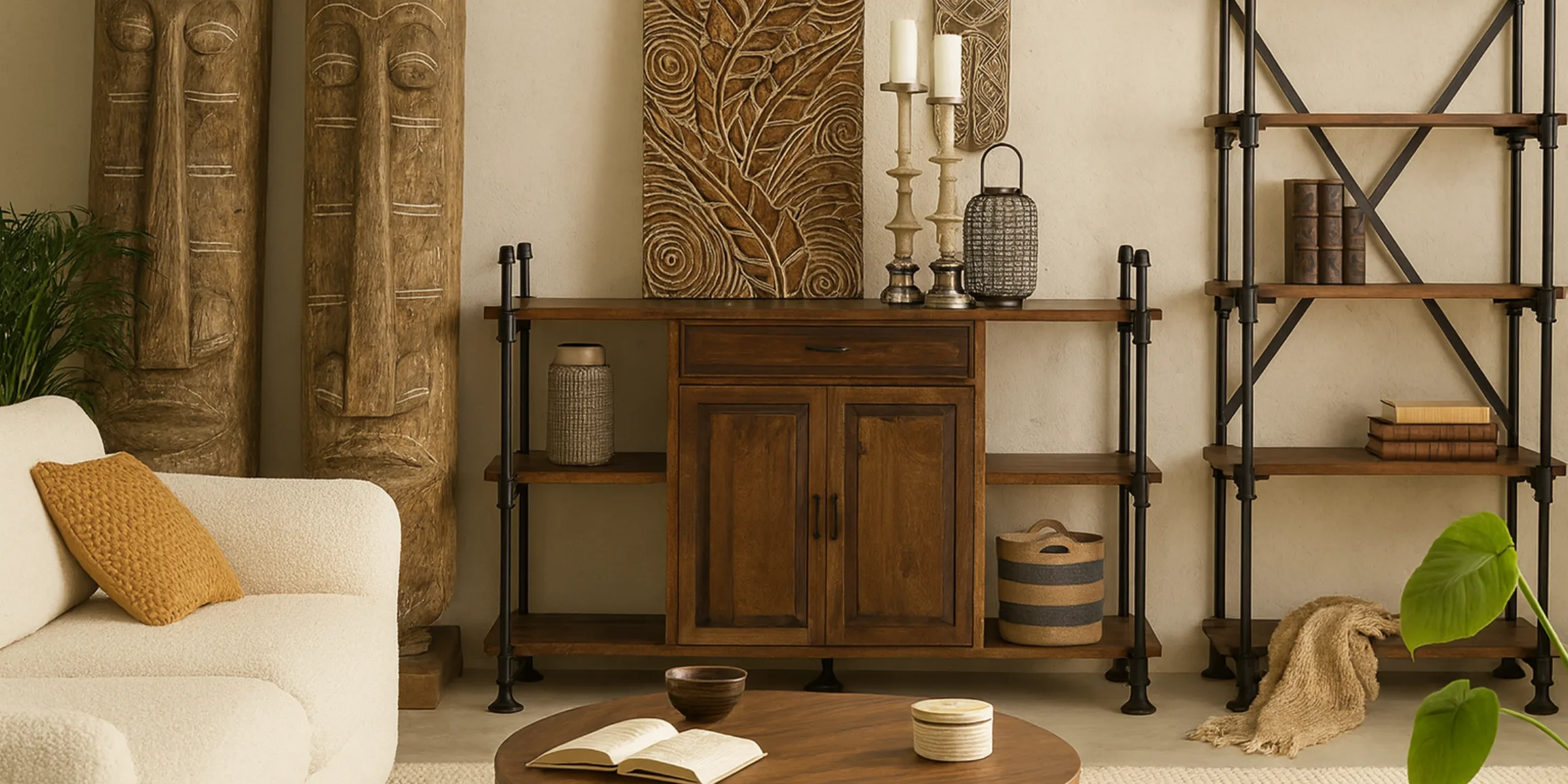 La madera de mango, además de su atractivo estético, es un material sostenible, ya que se obtiene de árboles que han cumplido su ciclo productivo. El hierro, por su parte, aporta solidez estructural y un toque urbano que potencia el estilo industrial contemporáneo.