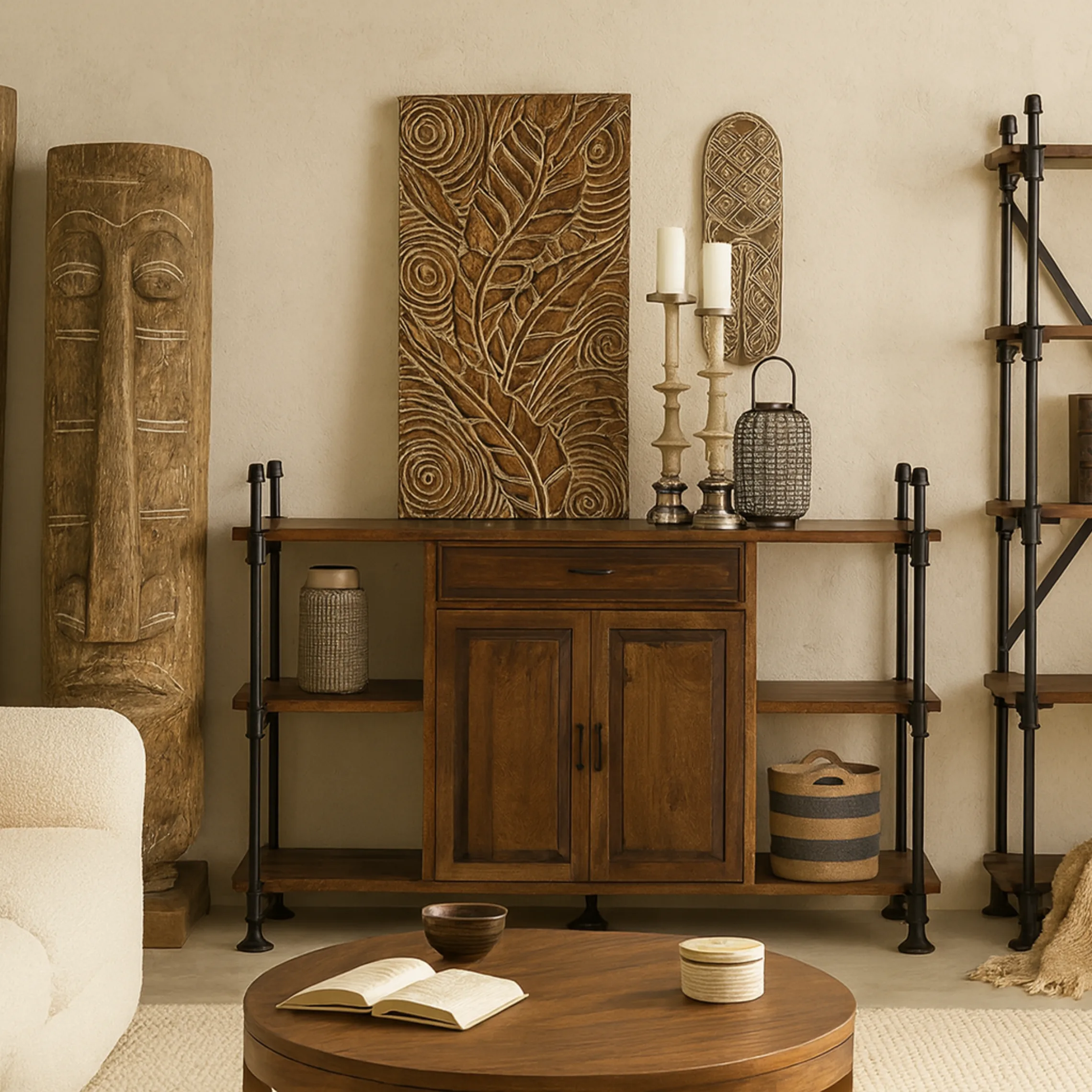 Cada mueble conserva la esencia de la fabricación manual, con ligeras variaciones en la veta o el acabado que refuerzan su autenticidad.