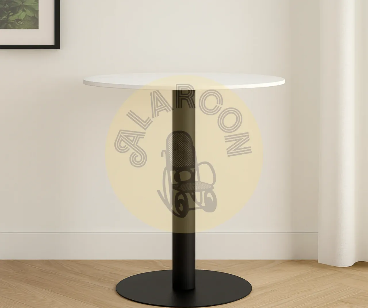 La mesa alta redonda de porcelánico y metal combina diseño contemporáneo y materiales duraderos para adaptarse tanto a espacios interiores como exteriores. Su tapa de porcelánico ofrece una superficie elegante y resistente al uso diario, mientras que la estructura metálica en color negro aporta estabilidad y un estilo minimalista.