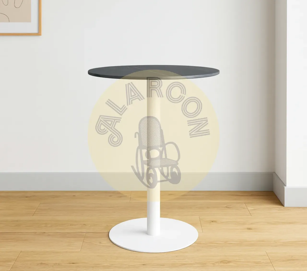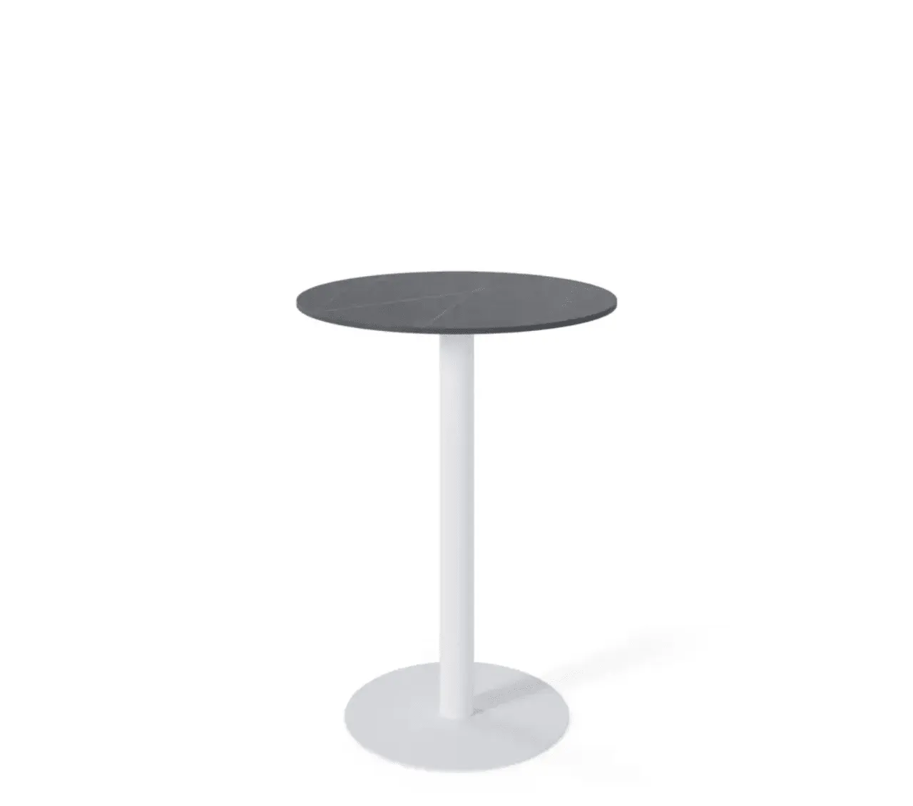 Diseñada para espacios modernos, esta mesa alta redonda combina un elegante acabado blanco y gris con una estructura metálica sólida y estable. Su tapa de porcelánico aporta un toque sofisticado y resistente, ideal para un uso diario en ambientes de cocina o bar.