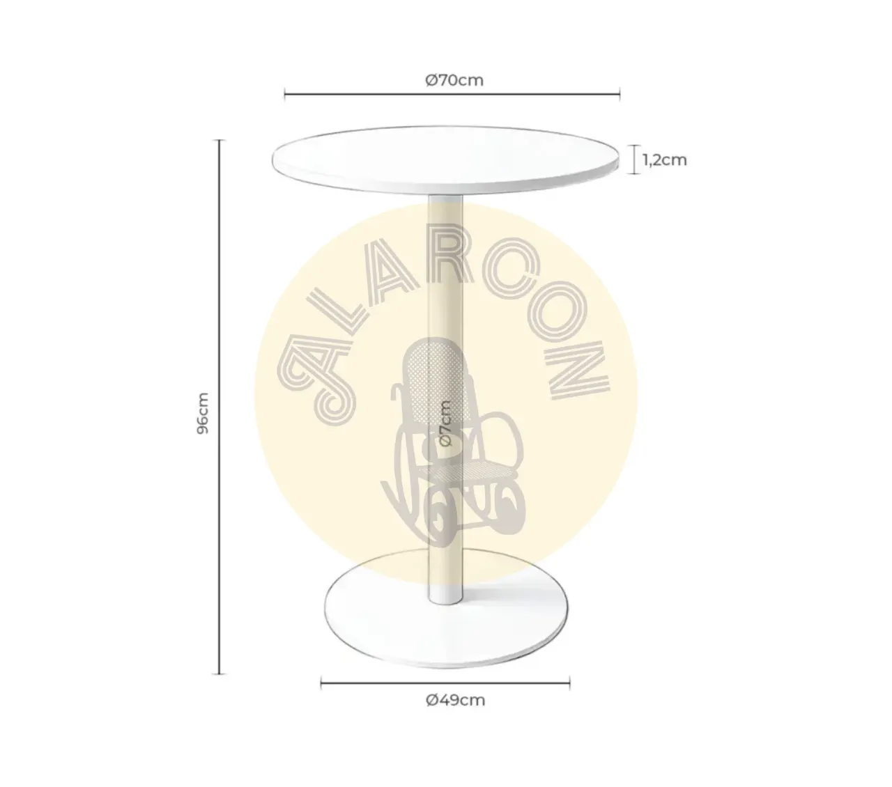 Con un diámetro de Ø70 cm y una altura de 96 cm, ofrece el equilibrio perfecto entre funcionalidad y diseño contemporáneo. Su base de Ø49 cm asegura firmeza, mientras que los materiales de alta calidad prolongan su durabilidad.