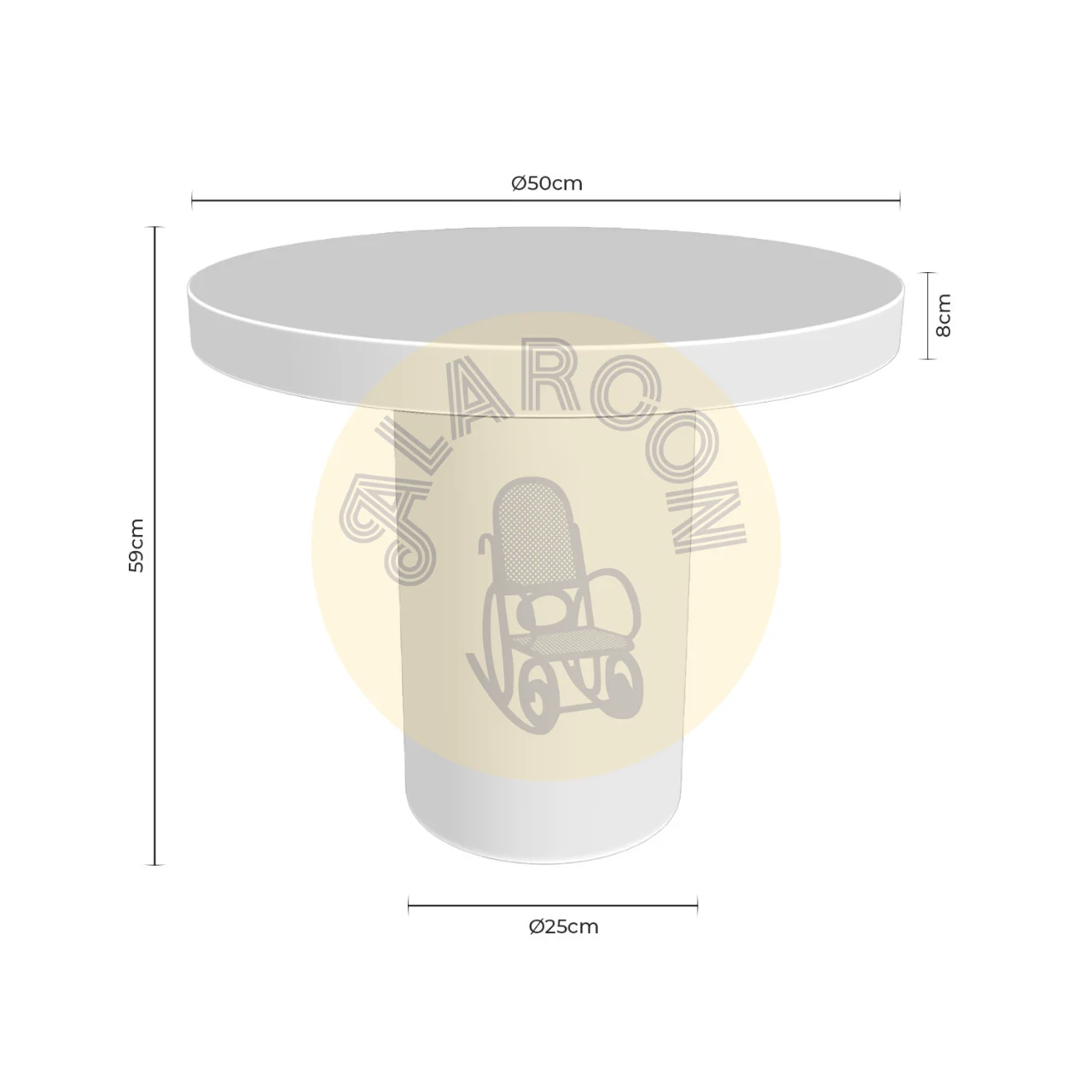 Estabilidad sólida gracias a su base cilíndrica de ø25 cm y tapa gruesa de 8 cm.
