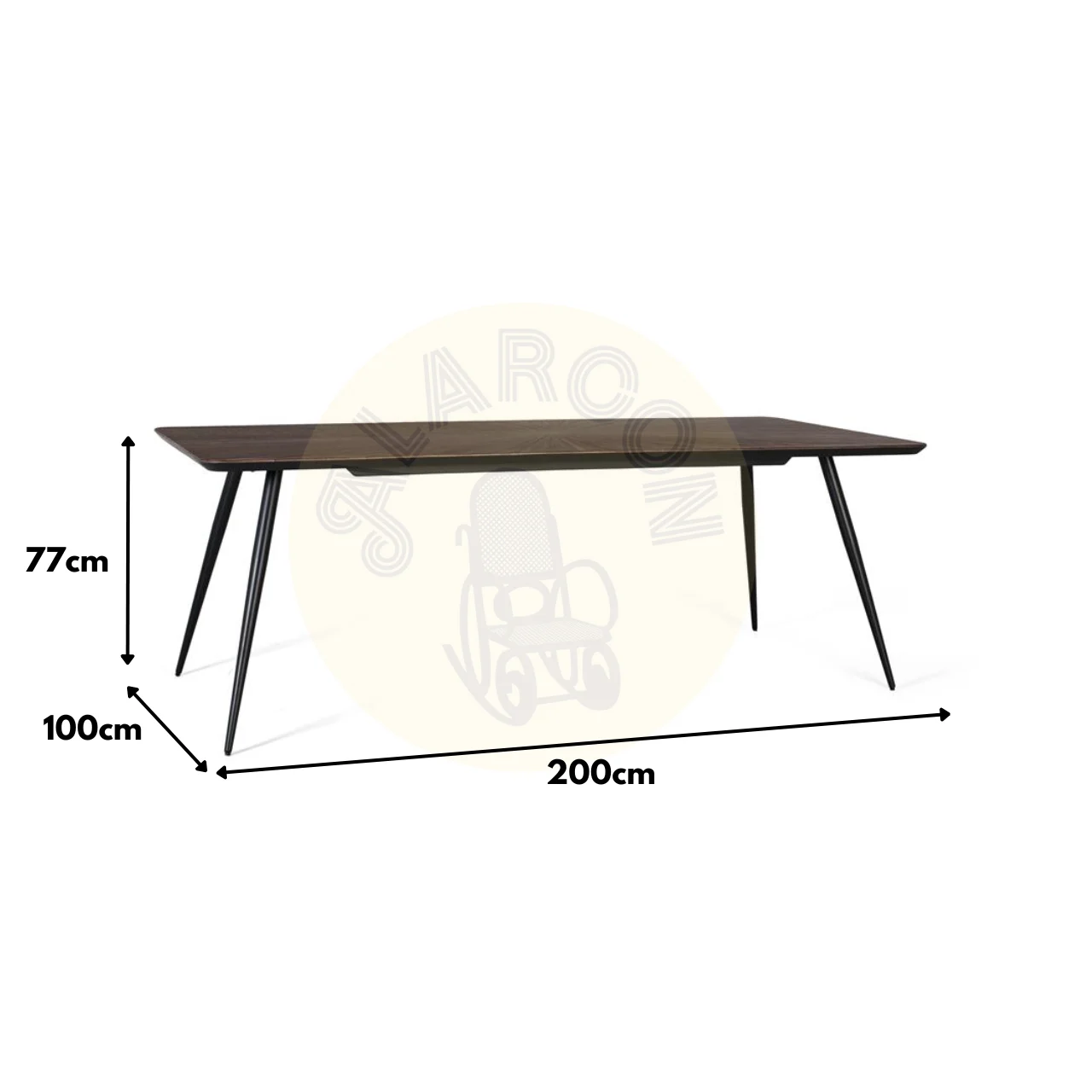 Con una altura de 77 cm, largo de 200 cm y ancho de 100 cm, esta mesa está pensada para quienes priorizan el espacio compartido, sin perder estilo ni robustez. Su peso total es de 50 kg y requiere montaje.