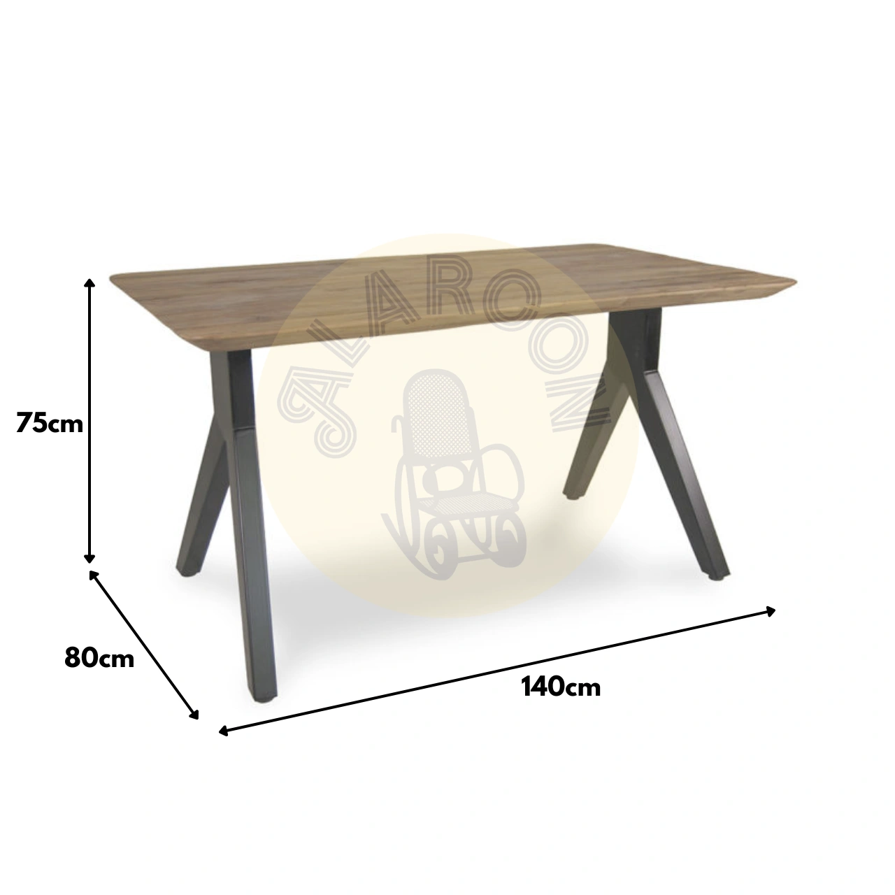 Con un tablero de 5,5 cm de grosor y unas medidas de 140 x 80 x 75 cm, ofrece una superficie sólida y estable perfecta para el día a día. Su acabado natural potencia el tono orgánico de la teca, creando una mesa de gran presencia visual y fácil de integrar en ambientes contemporáneos, rústicos o industriales.