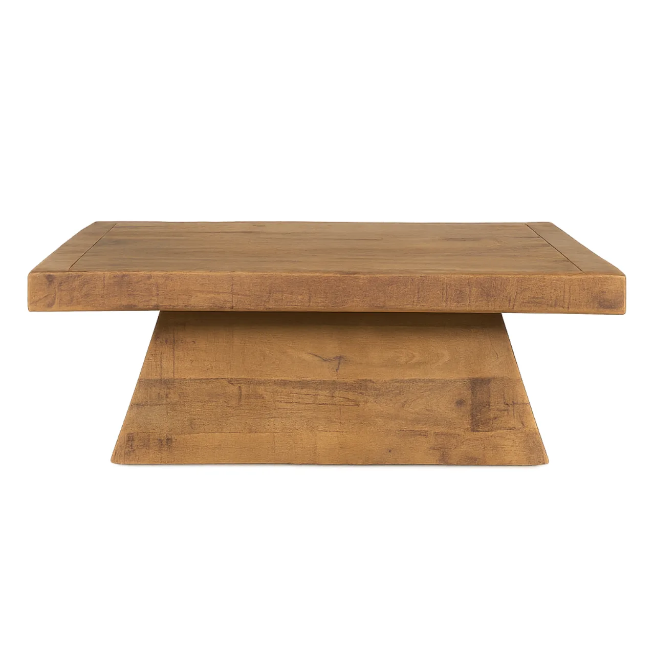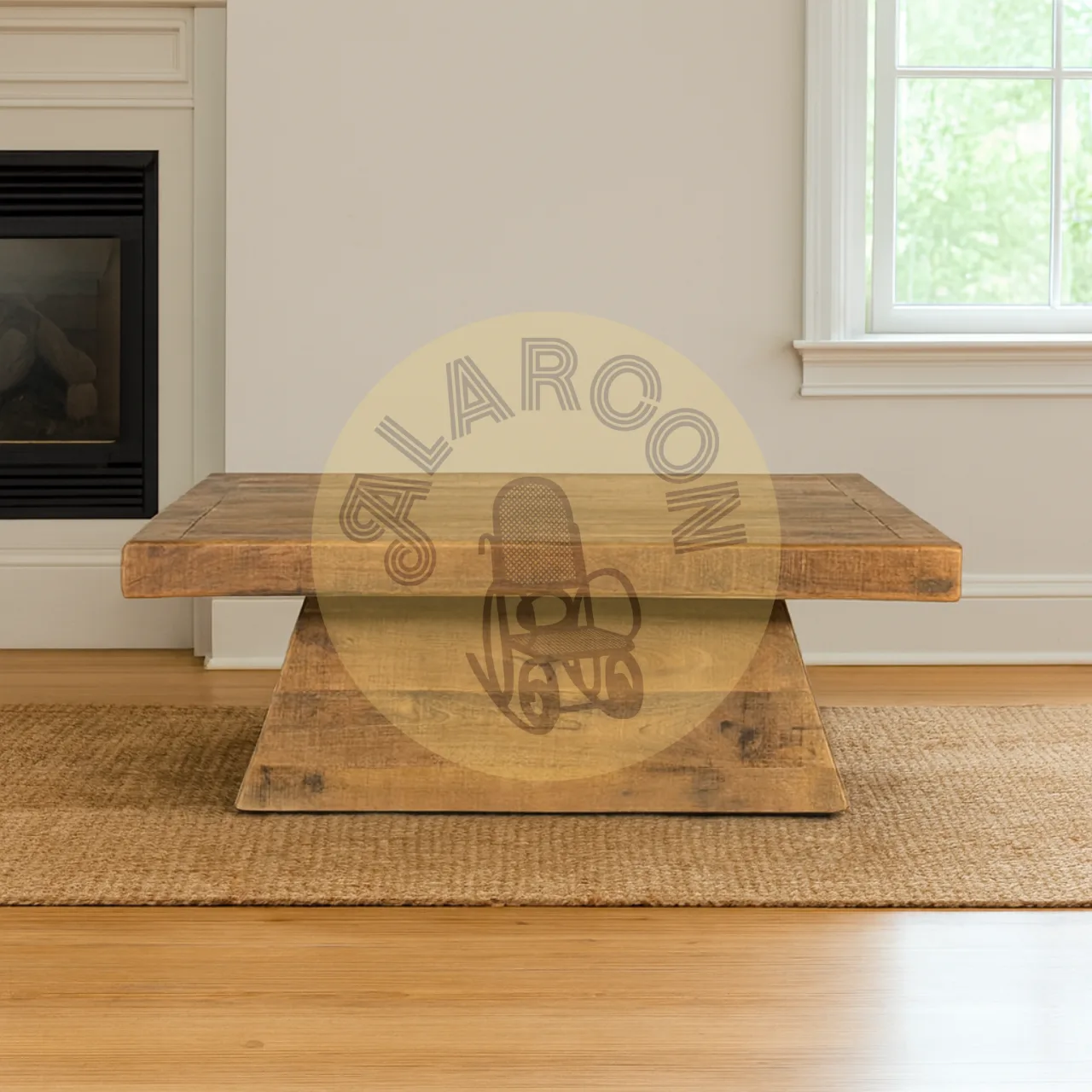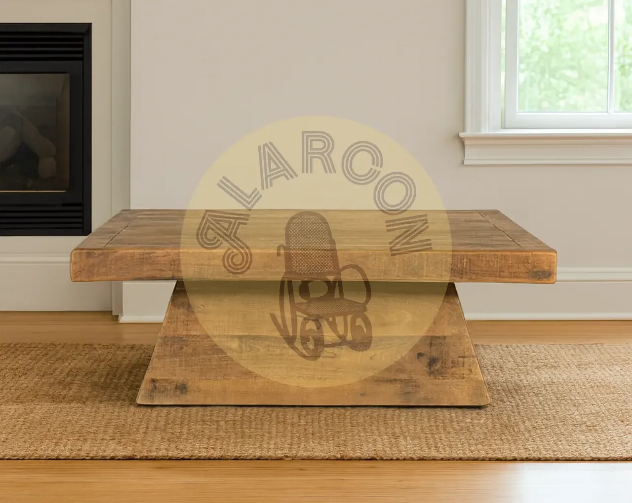Su base en pedestal aporta una estructura sólida y una gran estabilidad, creando una presencia visual que transmite carácter y autenticidad. El acabado en tono natural resalta las variaciones propias de la madera, haciendo que cada pieza sea única.